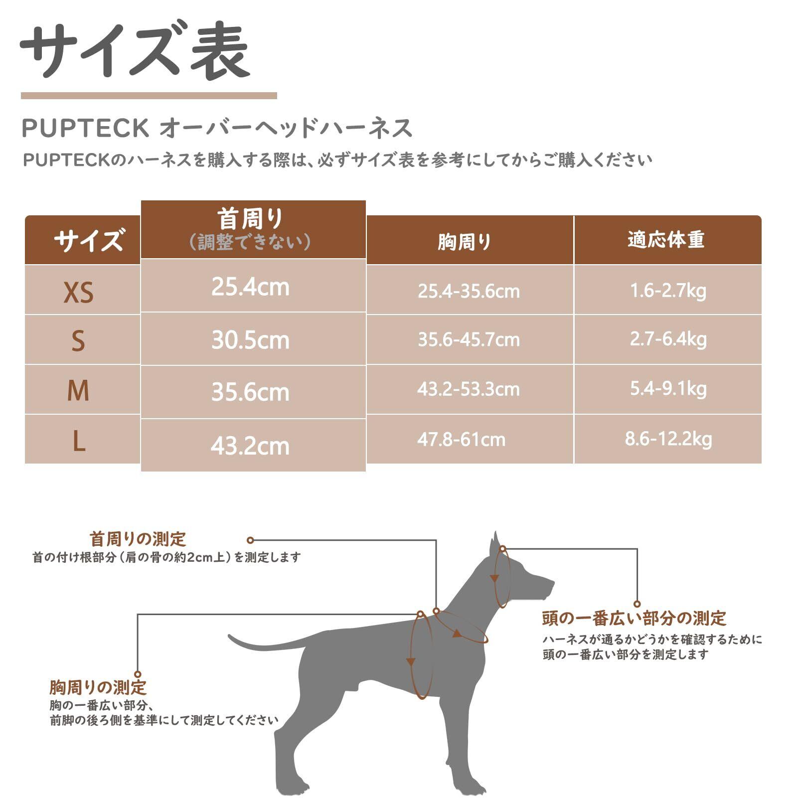 【サイズ】:[XS:首回り25.4cm、胸回り25.4〜35.6cm]、[S:首回り30.5cm、胸回り35.6〜45.7cm]、[M:首回り35.6cm、胸回り43.2〜53.3cm]、[L:首回り43.2cm、胸回り47.8〜61cm]、[XL:首回り52cm、胸回り52〜68.6cm]。サイズはペットの品種や体重に直接対応していませんので、通常のサイズでの注文は避け、必ず愛犬のサイズを測り、当社のサイズ表を参考にしてください。[ご注意]:首回りの調整はできませんので、愛犬の頭がハーネスを通るか確認してください。