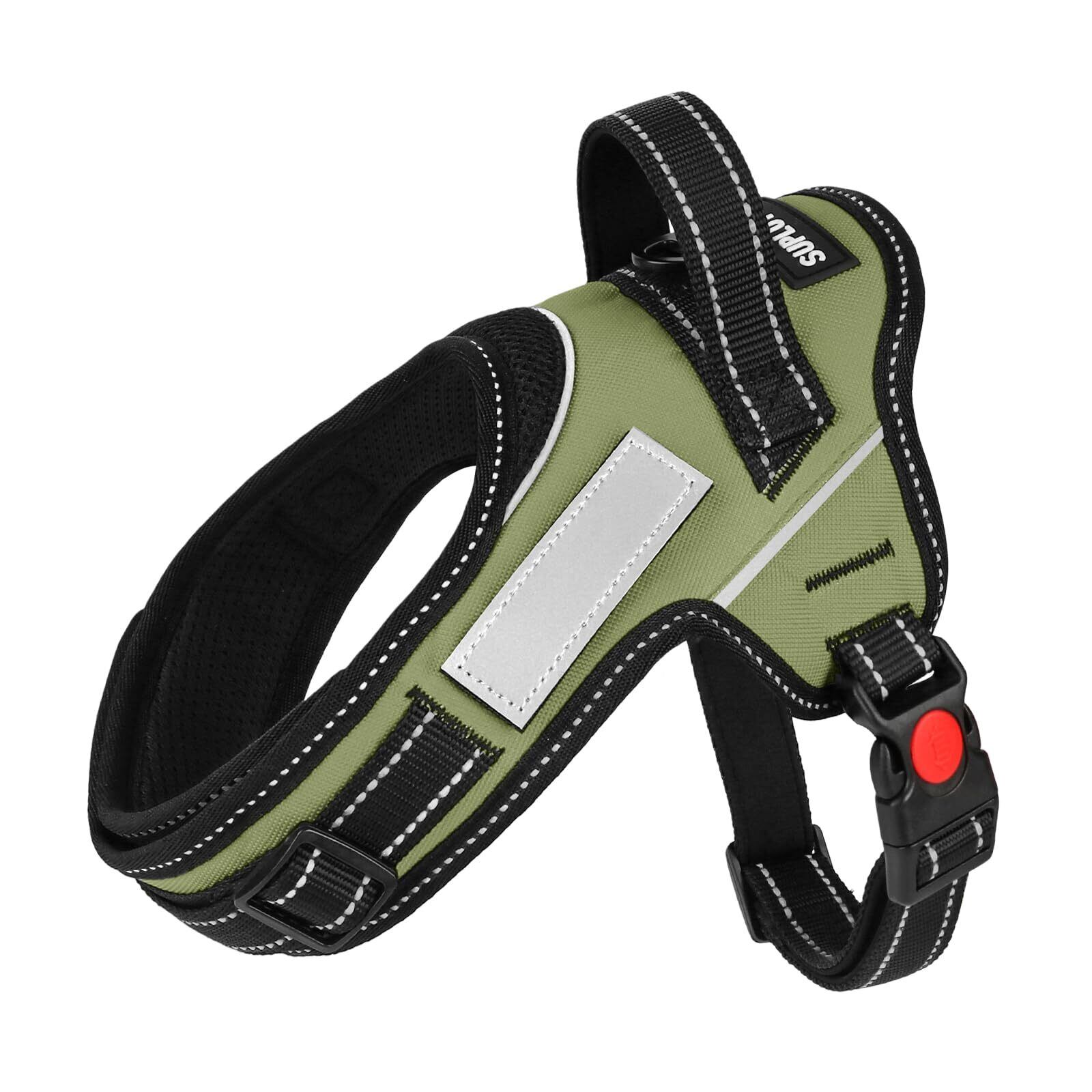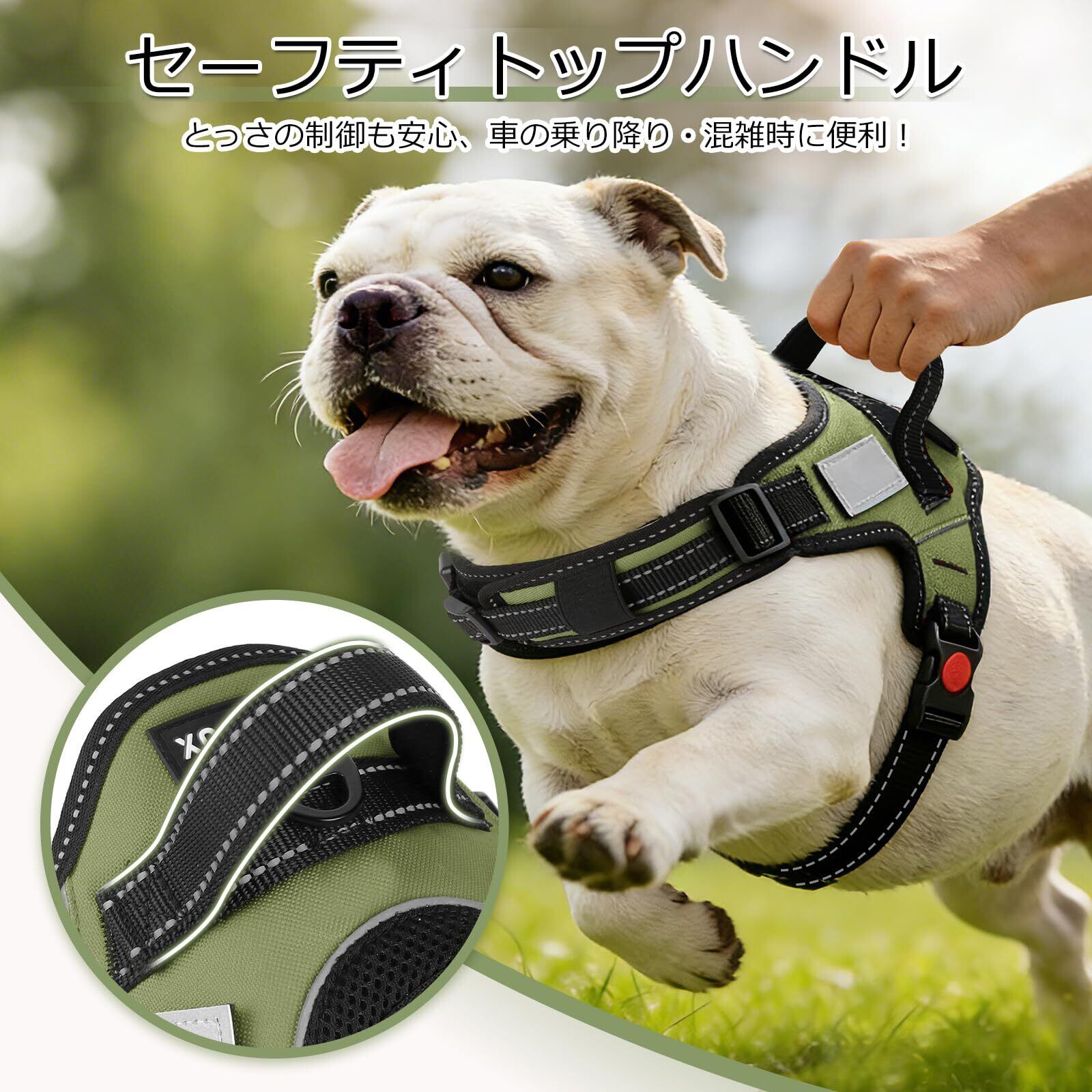 【新春セール】犬ハーネス 犬用胴輪 小型犬 中型犬 大型犬 ハーネス 喉に優しい 引っ張り防止 サイズ調整可能 メッシュ 通気性 簡単着脱 補助ハンドル付き 反射素材 夜間安全 散歩 しつけ用 可愛い おしゃれ (ダークグリーン, L)