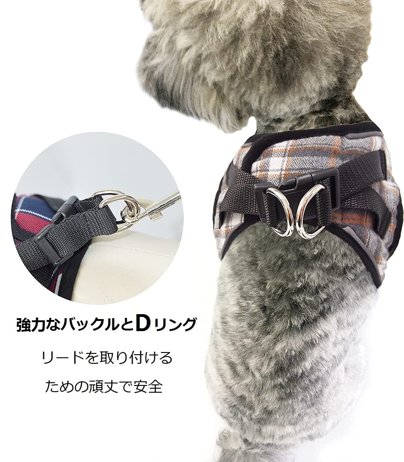 【特価商品】犬用チェック柄ハーネス 超小型犬 小型犬 中型犬 かわいい 抜けない 散歩 ソフト 通気性高い 調節可能 簡単着脱 おしゃれ 人気な胴輪 (カーキチェック柄, 2XS)