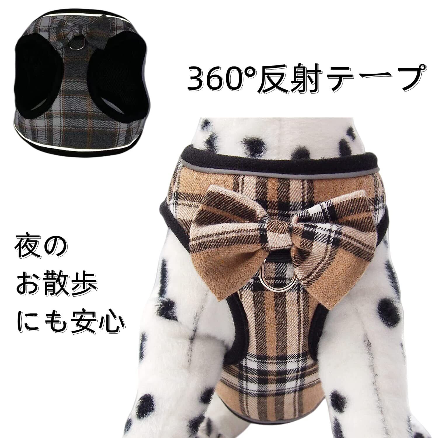 犬用チェック柄ハーネス 超小型犬 小型犬 中型犬 かわいい 抜けない 散歩 ソフト 通気性高い 調節可能 簡単着脱 おしゃれ 人気な胴輪 (カーキチェック柄, 2XS)