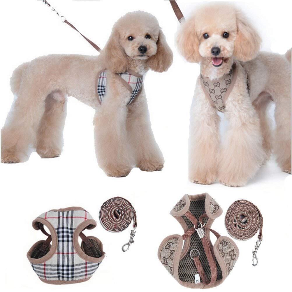 【在庫セール】犬ハーネスメッシュ小中型犬ナイロンペ ット胴輪 通気可調節猫用首輪かわいい 犬用ハーネスナイロン、子犬用調整可能なソフトメッシュベストハーネスリードセット YANW (Color : Camel, Size : XS)