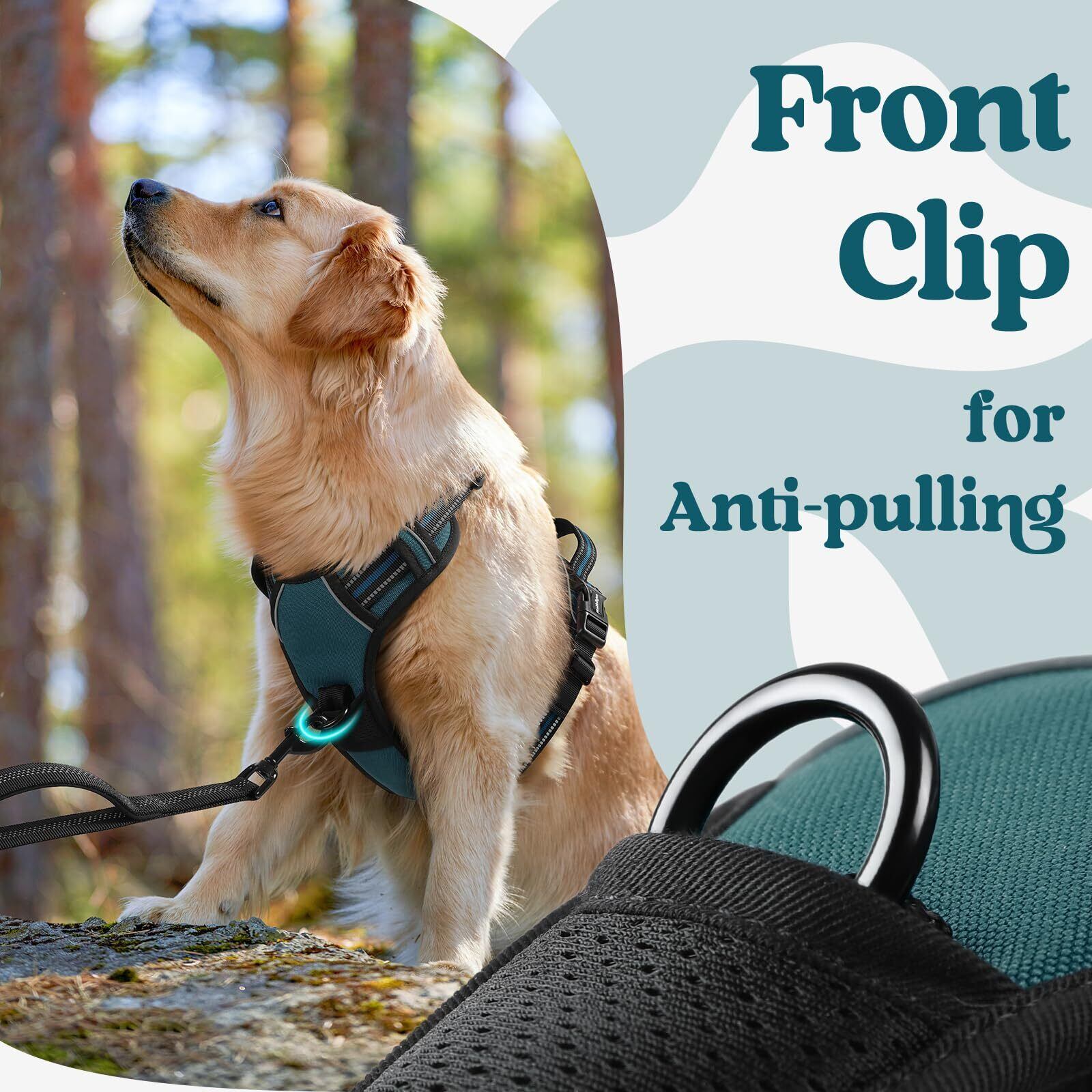 多様な使用シーンに対応:引っ張り防止の犬用ハーネスには、2つの金属製リーシュ取り付けポイントがあり、日常の散歩、ジョギング、ランニングなどの様々な活動に適しています。さらに、人間工学に基づいて設計されたトップハンドルは、追加のトレーニングサポートや持ち運びも便利です。