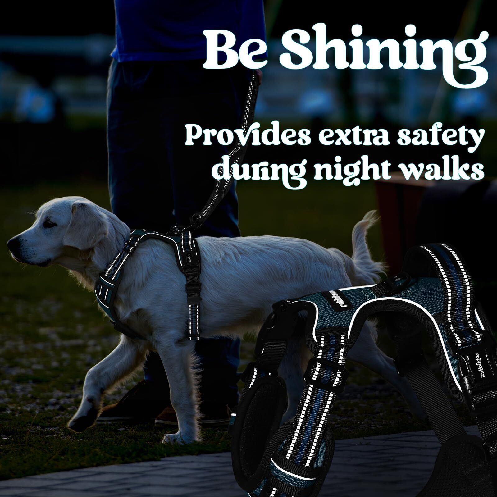[最新型犬ハーネス]rabbitgoo 犬 ハーネス 犬用胴輪 小型犬/中型犬/大型犬 引っ張り防止 サイズ調整可能 アタマを通さず 夜間反射材 抜けない 通気性 咳き込み防止 歩行補助 老犬 介護用品 散歩 しつけ用 ソフト 抜けない 通気性 簡単着脱 おしゃれ 安全 しつけ用 訓練 歩行補助 散歩(ダークグリーン L)