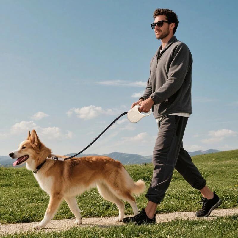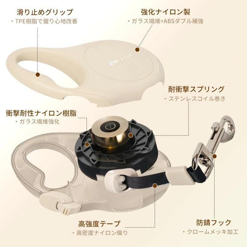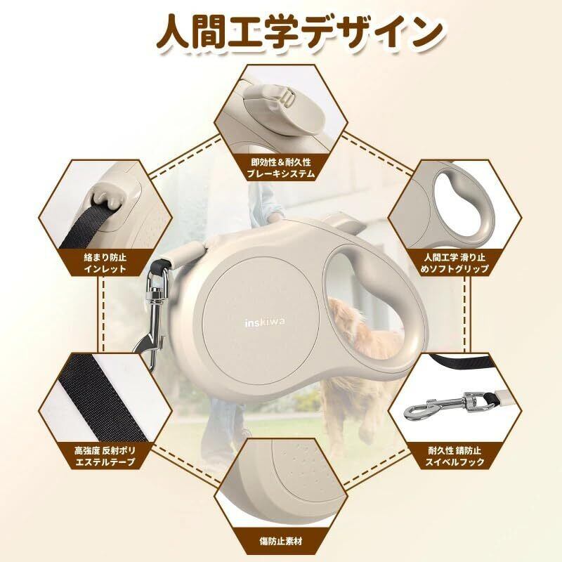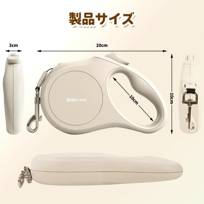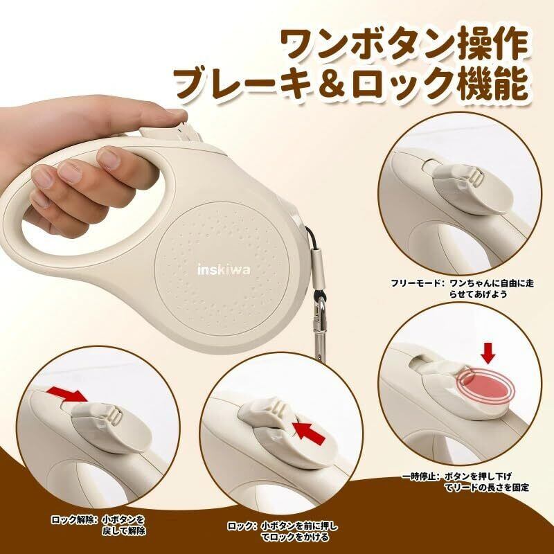 犬 リード 伸縮 ロングリード 自動巻き ストラップ付き リフレクター 小・中型犬用 [長さ:5m 適応体重30kg]
