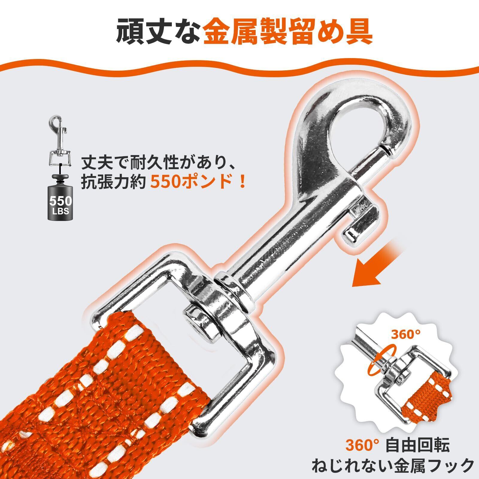 【丈夫でねじれない360°金属製フック】頑丈な金属素材を作られ、ペットのハーネスや首輪に固定できます。 360°回転設計により、リードが絡みにくいなので、度犬はもっと自由に遊びます。