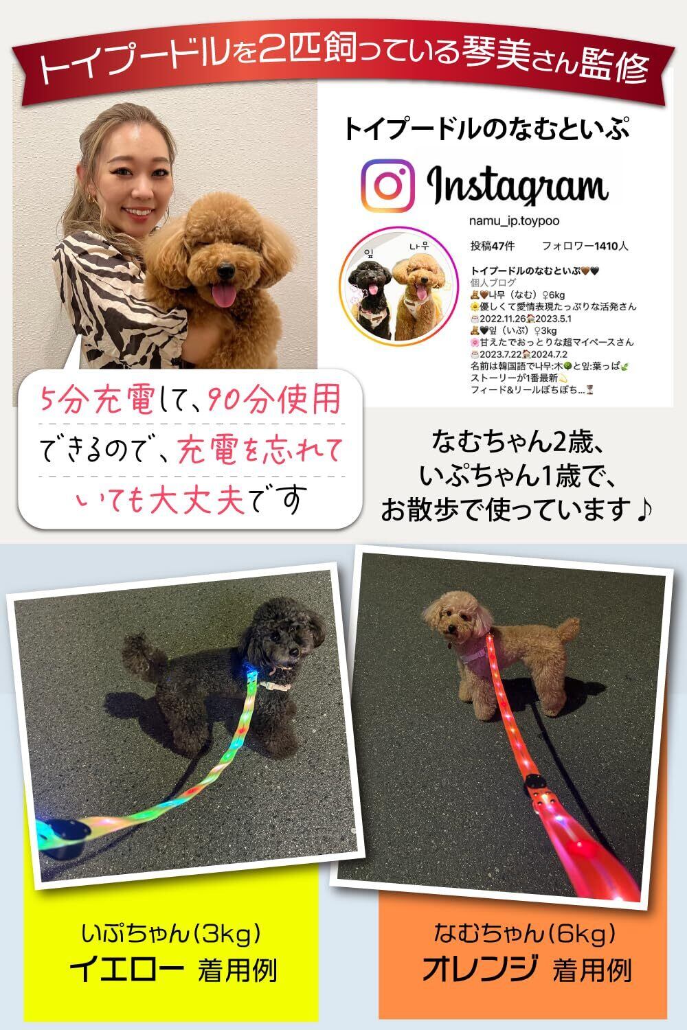 【トイプー2匹の愛犬家監修】 光るリード 『5分充電で90分使用可能』 「ぴかリード」(小型犬専用設計)USB充電式xフル充電60分で8時間使用可能 (ブラック, ワンサイズ)