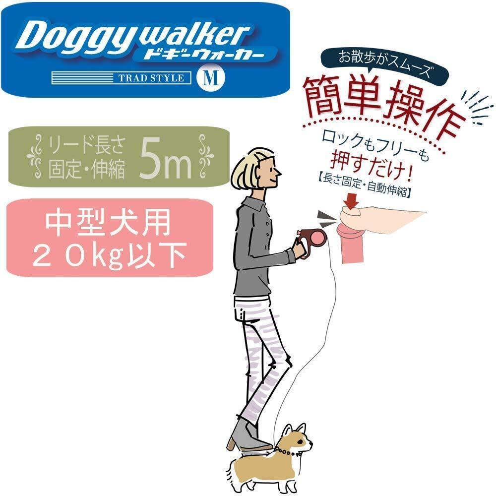 ・体重20kg以下の中型犬用。・丸ヒモ5mの伸縮リール式散歩用リード。・操作はボタン1つで、簡単!押してロック!押してフリーで使いやすい!・握りやすくすべりにくいハンドル部ラバーカバー。