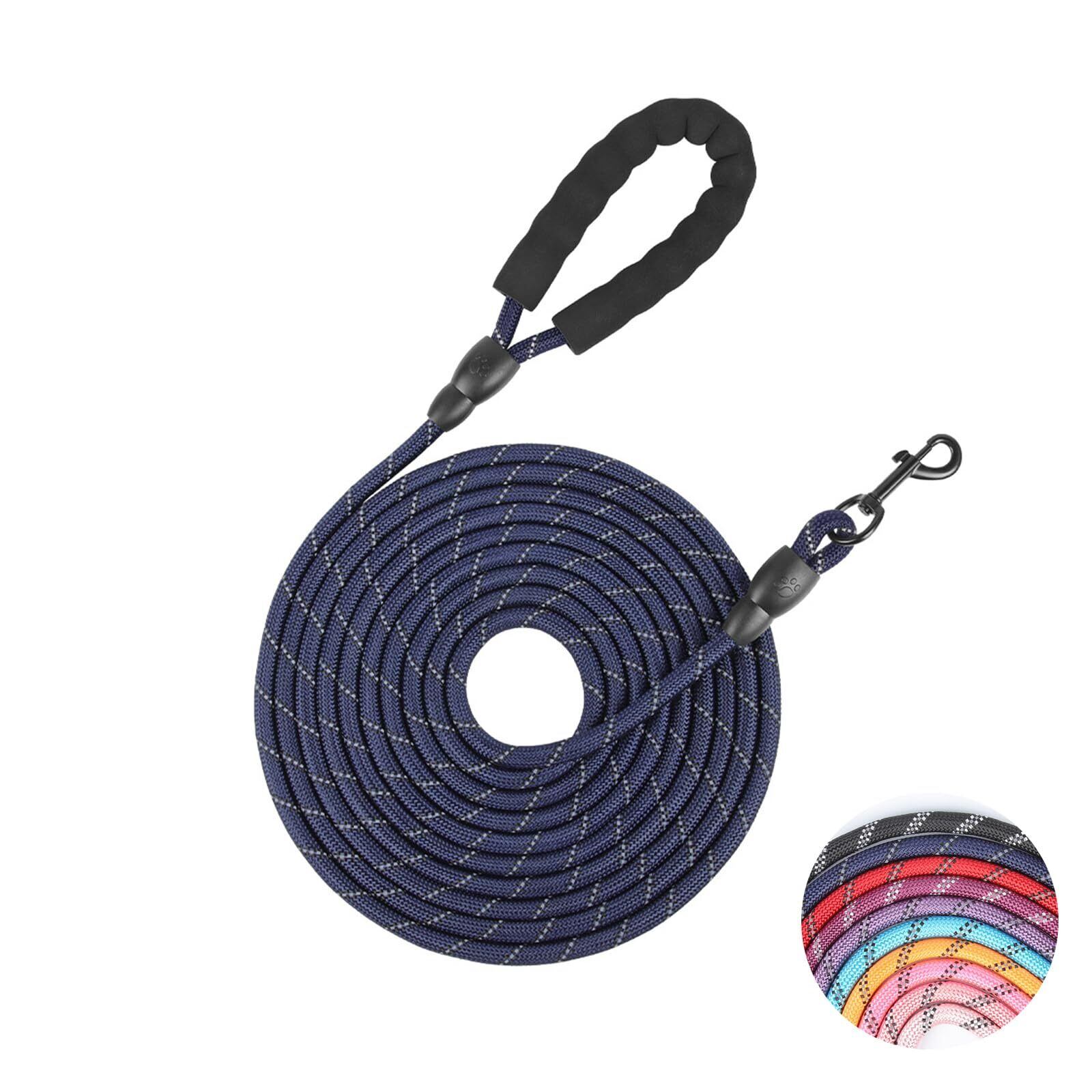 ロングリード 10m、大型犬と中型犬に最適、絡まないロング犬用リード、快適なハンドルと反射ストリップ付き (海軍, 10M)