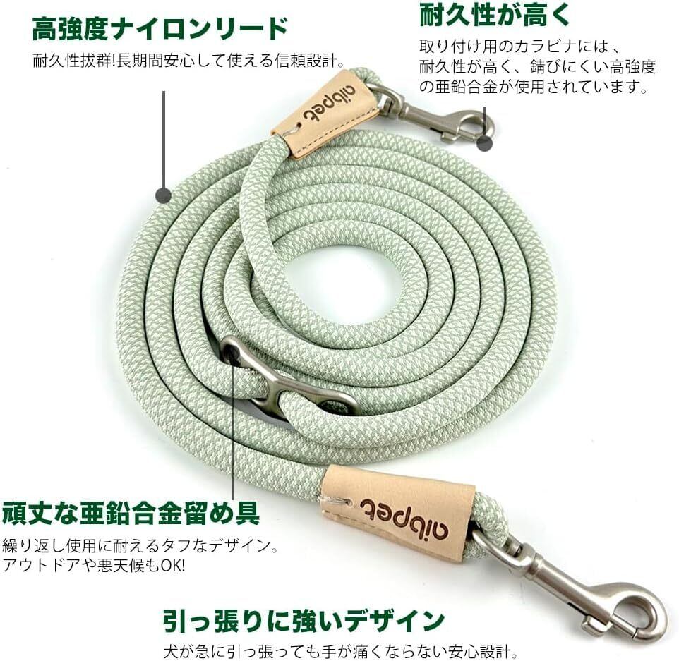 肩掛け対応 犬リード ハンズフリー 小型犬 中型犬 大型犬も安心 高強度ナイロン製 両手が空く散歩紐 長さ調整可能 排泄物袋ホルダー付き green 8mm