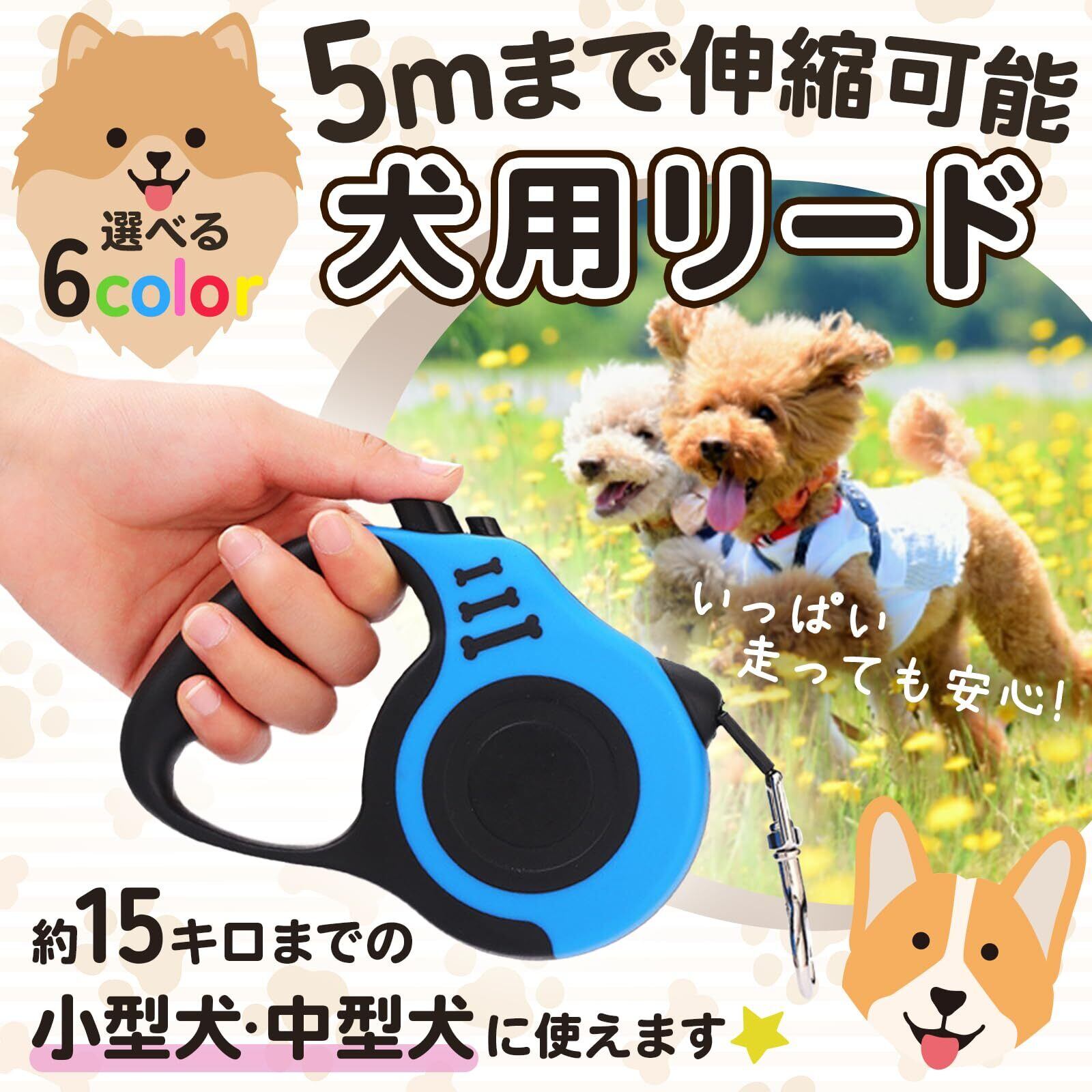 小型~中型犬に使用できる5mの巻取り式伸縮リードです。