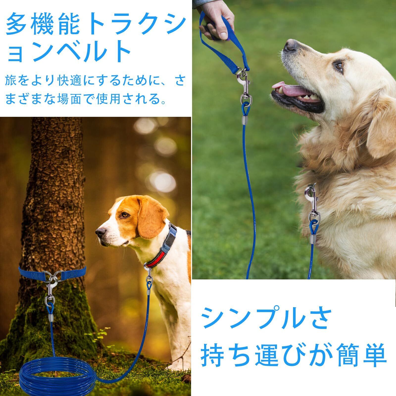 広い適用範囲:キャンプ、公園、中庭、庭などの屋外活動では、この犬用ケーブルを使ってペットを保護することができます。持ち運びに便利で、キャリングバッグに収納できます。