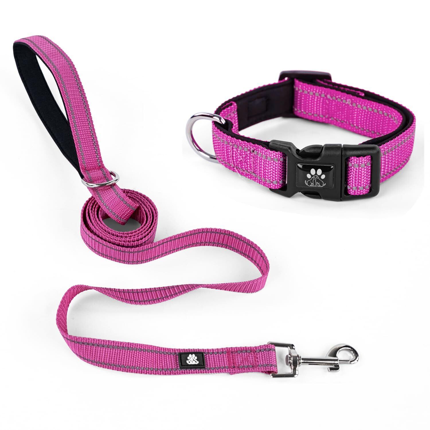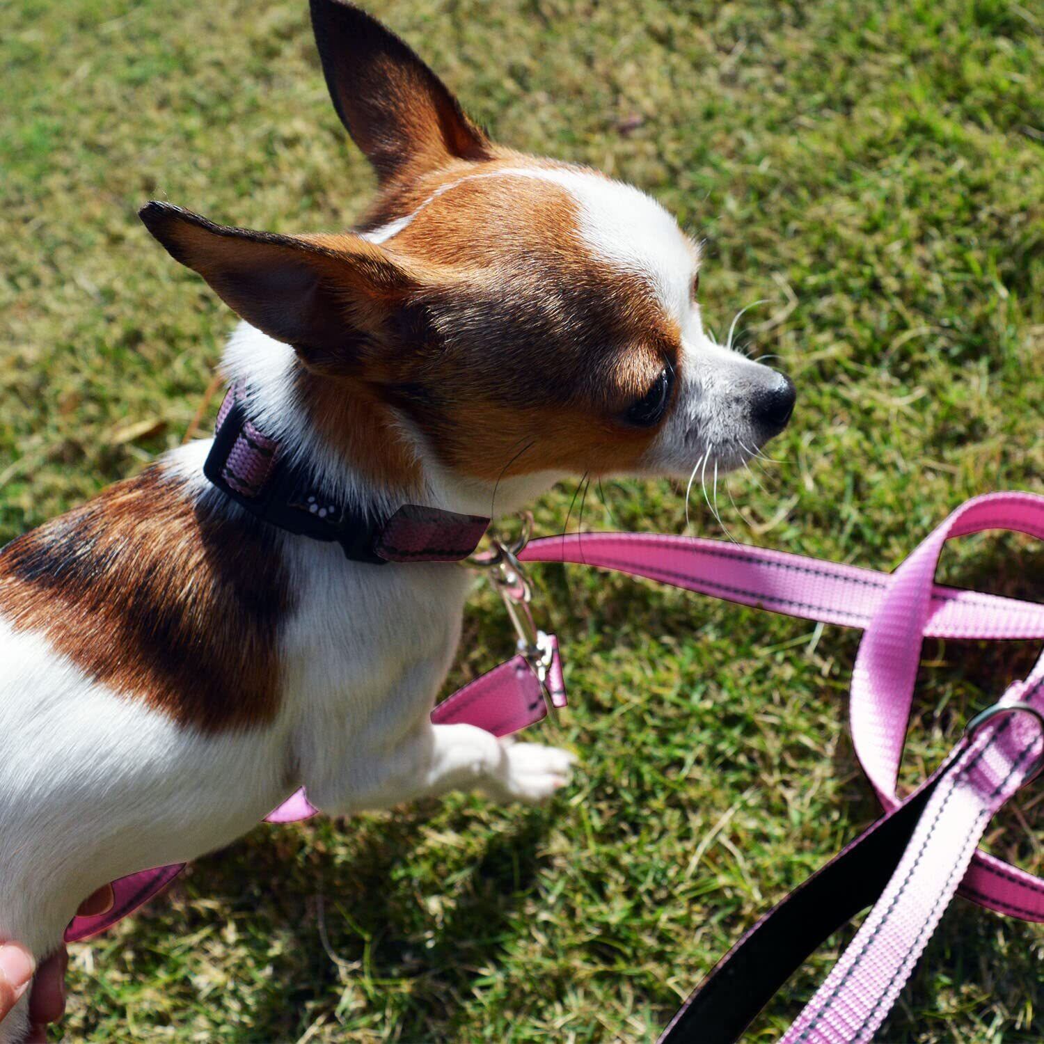 NESTROAD 犬用首輪・リードセット 調節可能 夜間反射 小型犬・中型犬・大型犬用 全犬種対応 1.5mリード付 おしゃれ メッシュ 通気性 安全 散歩・訓練用 ソフト 痛くない 簡単装着 丈夫 ドッグ(XS,ローズレッド)