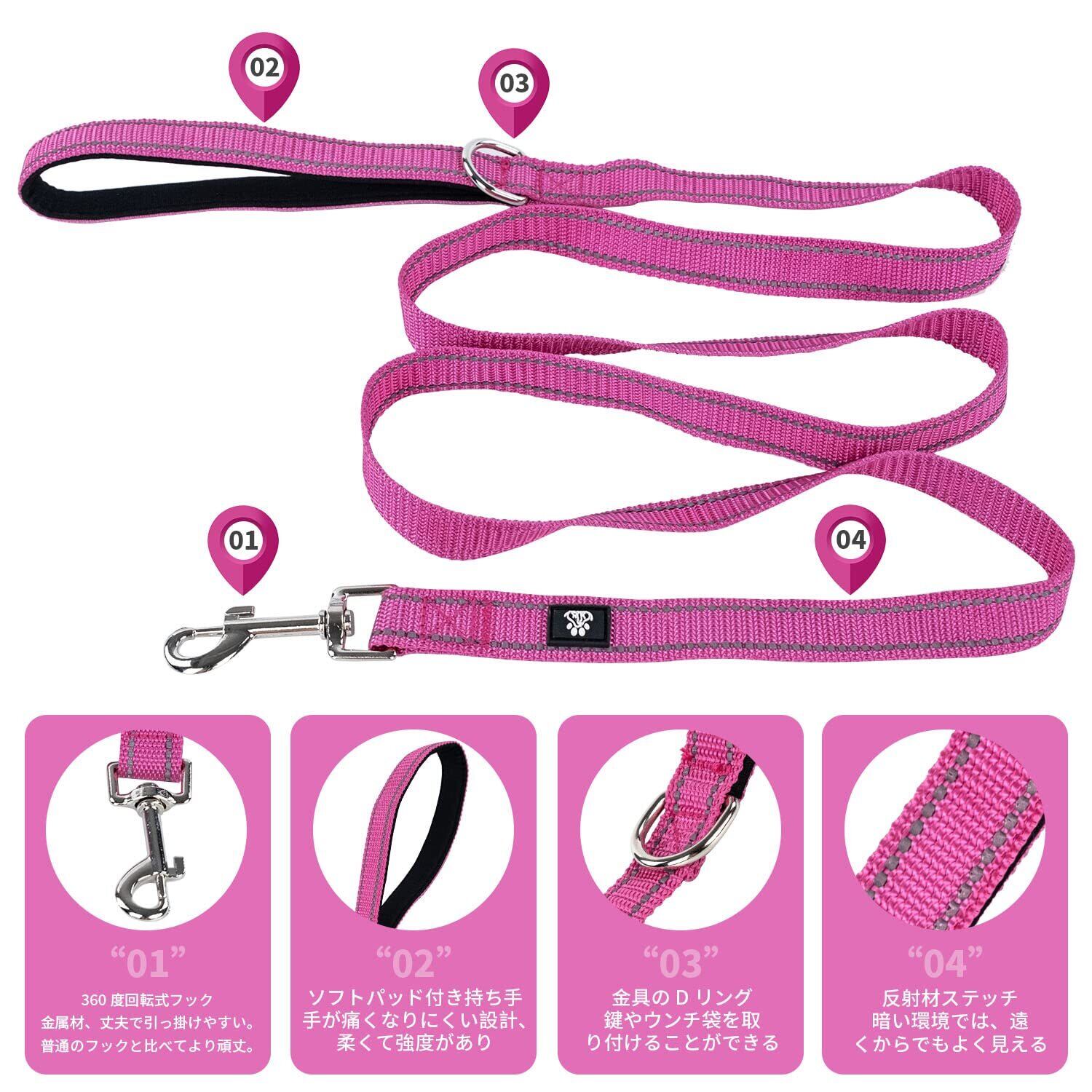 【リード長さ1.5M】1.5mの長さの犬用リードは、愛犬が歩くのに十分なスペースを確保しながら、簡単にコントロールすることが可能です。幅は2.5cmで、小型犬、中型犬、大型犬に適しています。