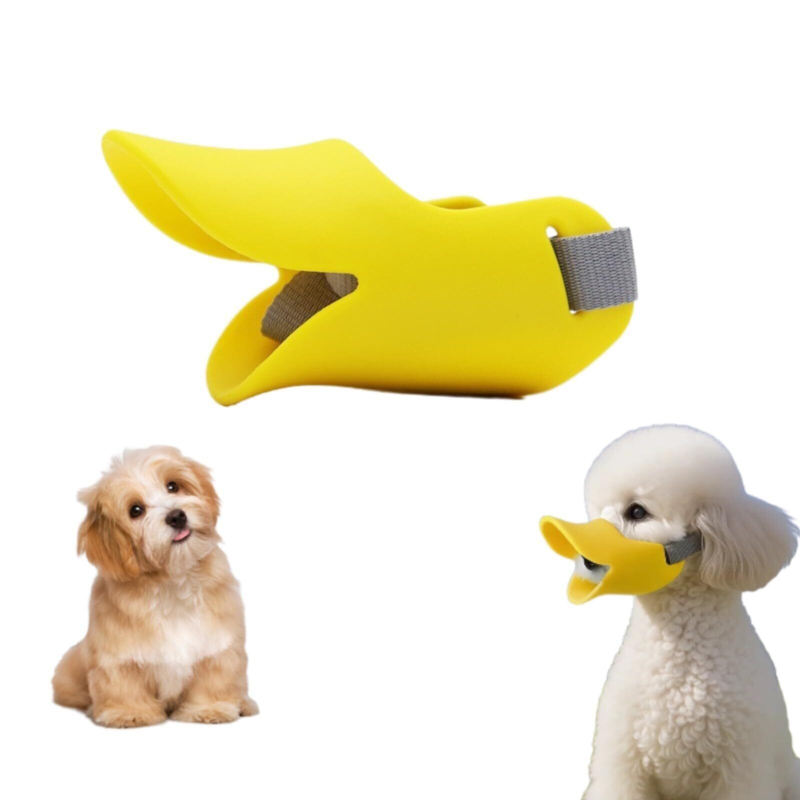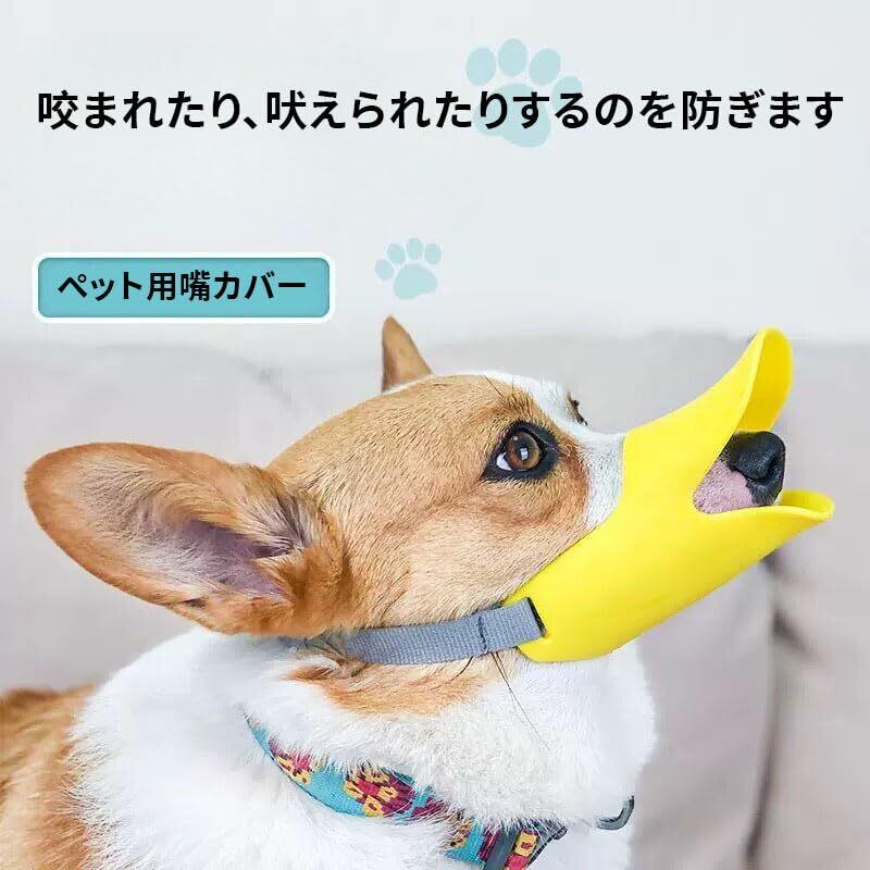 【新着商品】aninako 犬 口臭 犬用マズル 口輪 犬アヒル口セット シリコン犬口 ペットシリコンゴムセット 犬調節セット 犬 便利グッズ 噛み防止 家具破壊防止 ペットグッズ (イエロー, Mマズル:15cm、後頭部18cm-30cm)