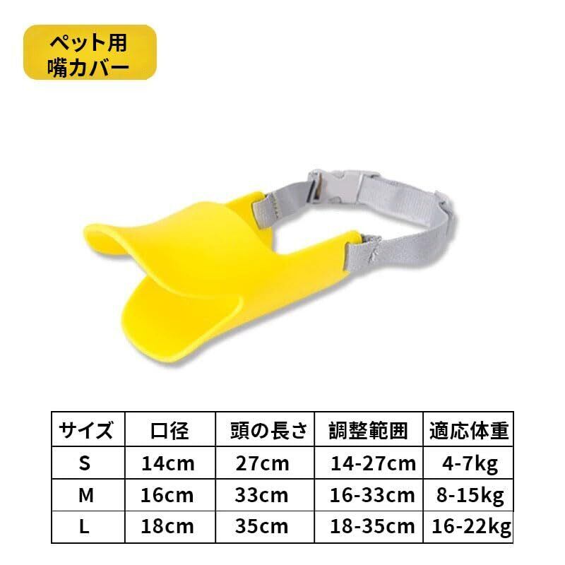 ご購入の前に:Sマズル周囲:14cm、後頭部14cm-27cm、犬の体重:4-7kg。Mマズル:16cm、後頭部16cm-33cm、犬の体重:8-15kg。Lマズル:18cm、後頭部18cm-35cm、犬の体重:16-22kg。ご購入前に、愛犬のマズル周囲を測定してください。ペットによってサイズが異なるため、体重は参考値です。愛犬のマズルのサイズに合わせてご購入ください。