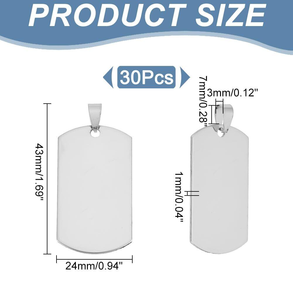 【特価セール】[UNICRAFTALE] 30枚 43mm ネームタグ 304ステンレススチール製ブランクタグペンダント 空白札ペンダント 刻印可能 IDタグ プレート 長方形 ステンレス色 メタルチャーム 垂れ飾り 迷子札 猫犬 首輪用 ネックレスパーツ アクセサリーパーツ 手芸 DIY用品 穴径3x7mm