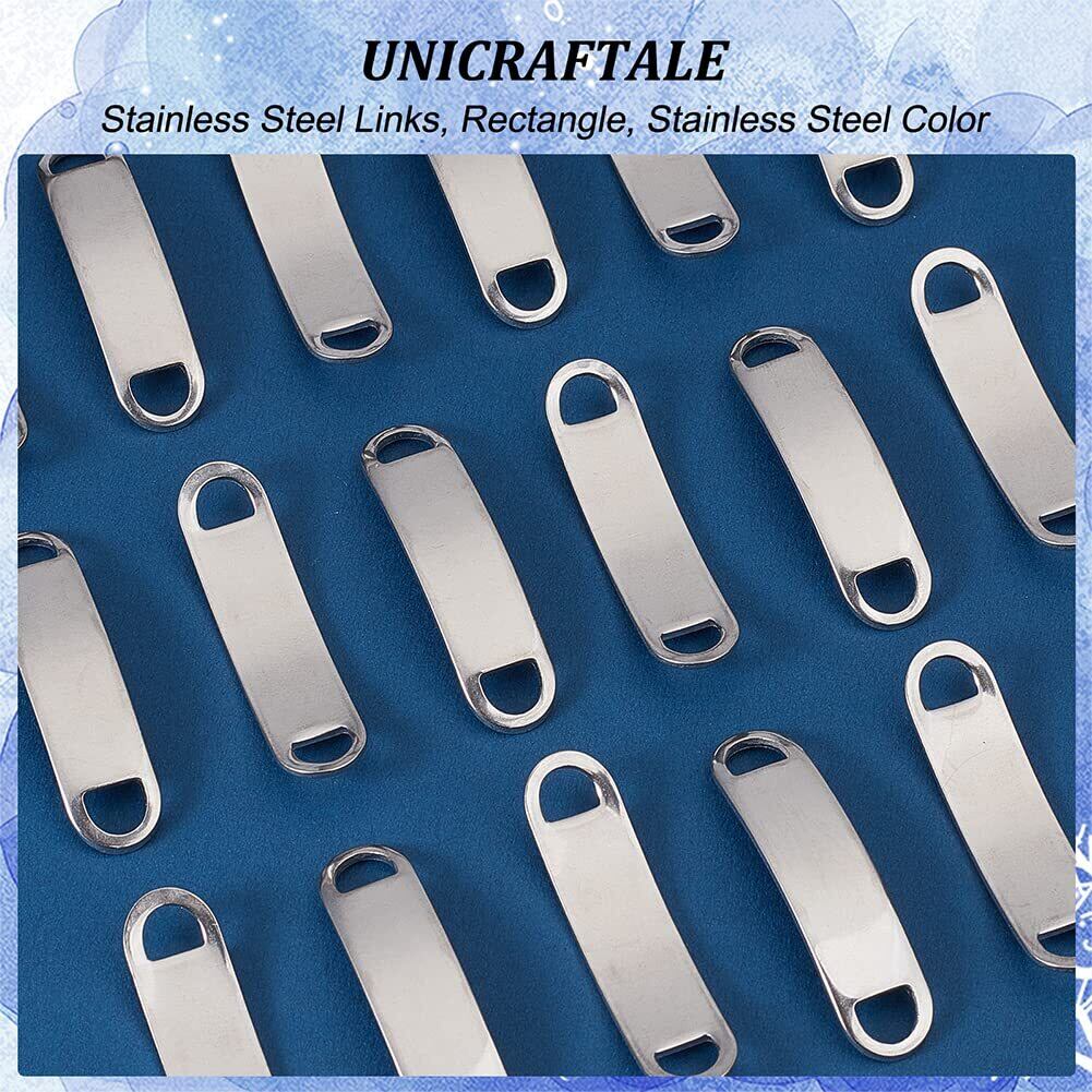 [UNICRAFTALE] 長方形コネクタチャーム レタリング可能 304ステンレス製リンクコネクタ ブランクタグコネクタ ステンレス鋼色 メタルコネクタ 金具 メタルビーズチャーム ブレスレット作り ジュエリー作り ネックレス用 ギフト アクセサリーパーツ