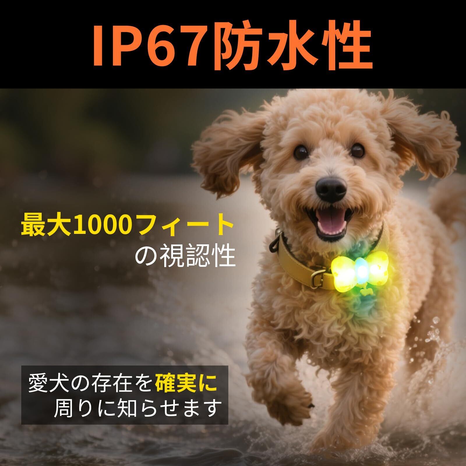 【実用性 】首輪やハーネスに簡単装着可能で、防水機能付きで雨の日も安心 ※この製品は高品質な素材で作れたので、自然環境、人体、ペットに危害を与えない。夜間など暗い場所でも愛犬・愛猫の存在を知らせ安心してお散歩ができます。