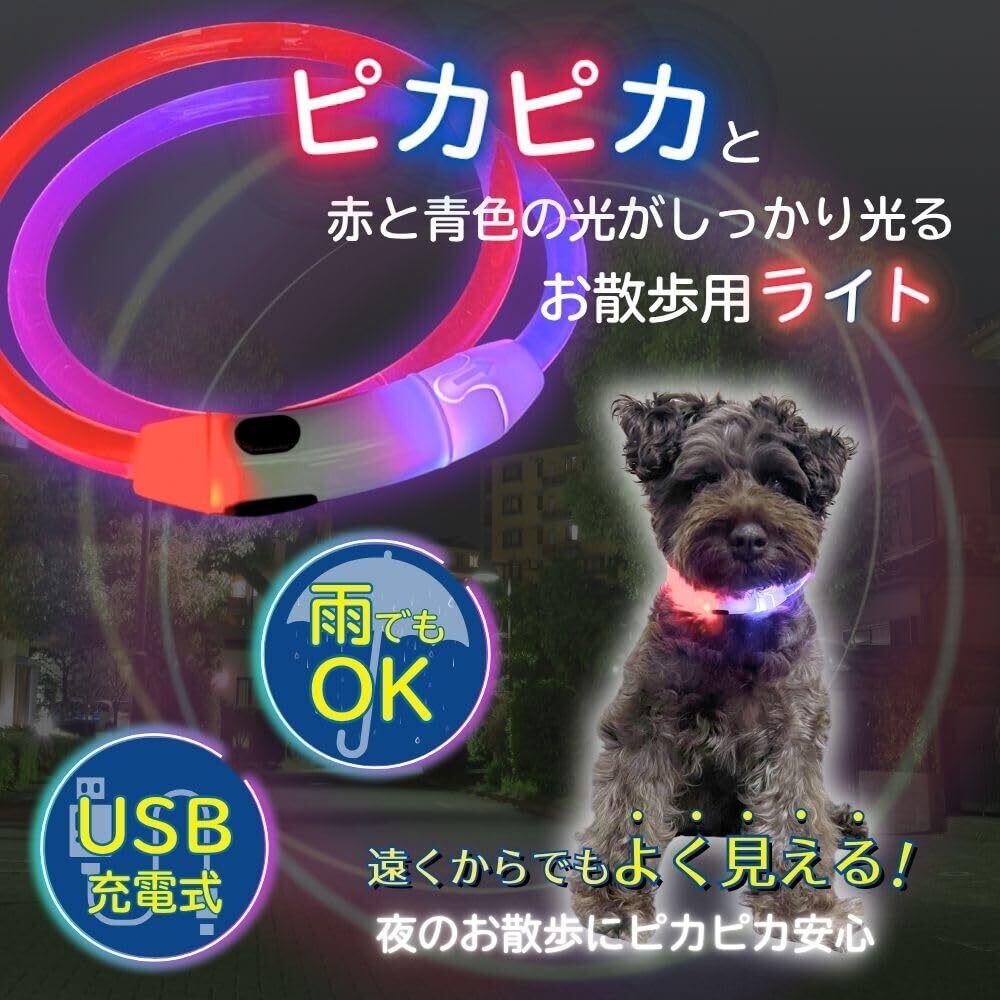 遠くからでもよく見える!USB充電式のライトリングでピカピカ2色(赤・青)点灯するお散歩用ライト・バッグやカートに・愛犬の首周りに!※カット可能範囲 約25~59cm