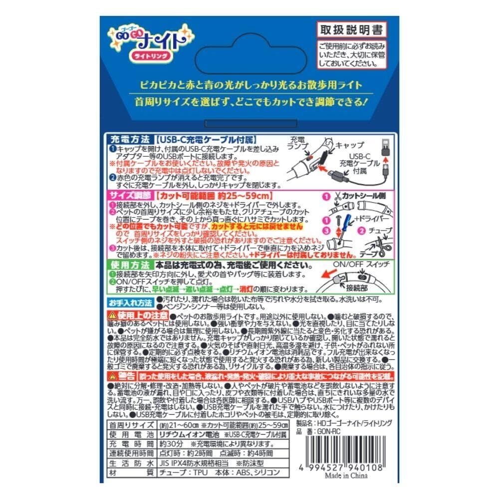 遠くからでもよく見える!USB充電式のライトリングでピカピカ2色(赤・青)点灯するお散歩用ライト