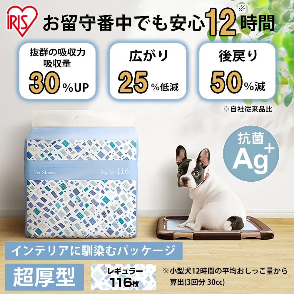アイリスオーヤマ ペットシーツ 超吸収 【超厚型タイプ】 抗菌銀イオンAg+配合 ニオイカット 吸収力30%UP レギュラー116枚