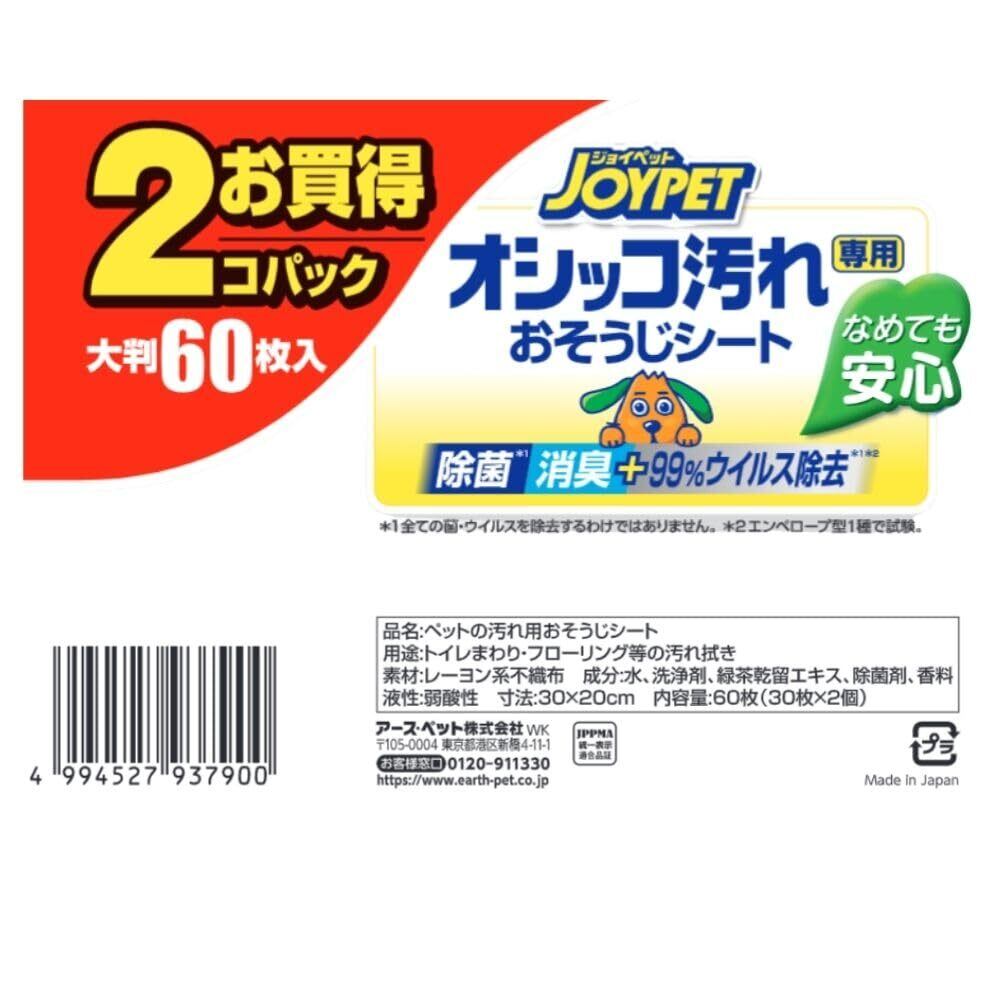 【特価セール】JOYPET(ジョイペット) オシッコ汚れ専用 おそうじシート 30枚×2個パック