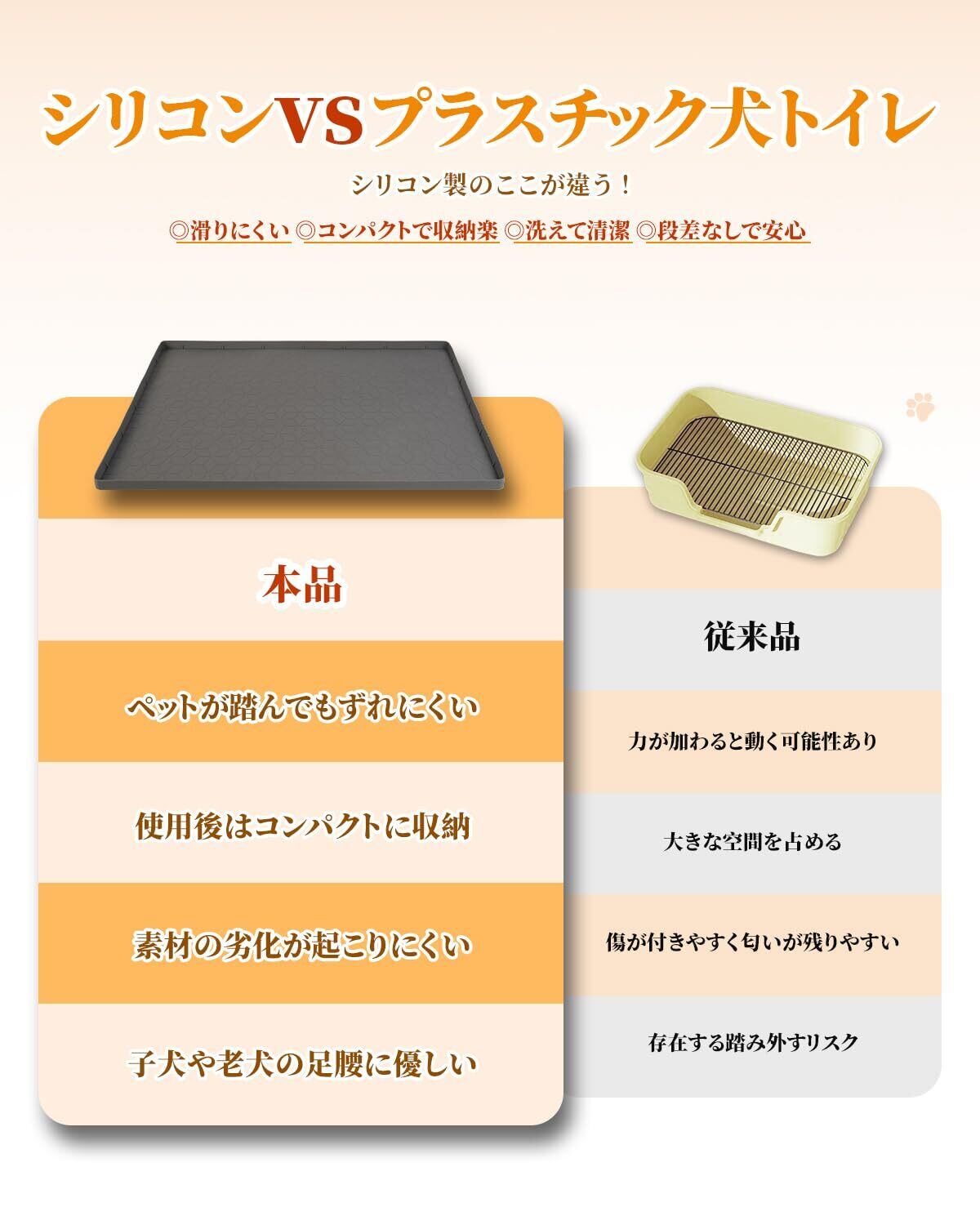 安心の滑りにくさ:素材自体に優れた滑り止め効果があり、ペットの動きをサポート。段差のない低平設計なので、犬 おしっこトレーとして子犬から老犬まで関節に負担をかけずにご利用いただけます。