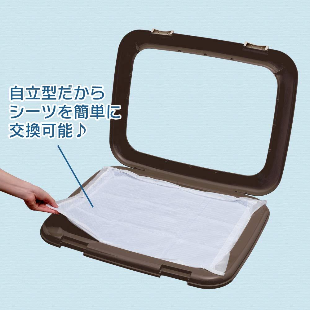 【商品説明】:トイレシーツを固定できる、ペット用のトレーニングトイレトレーです。トイレトレーニングに最適なメッシュスノコ付きです。シーツのフチが立ち上がる構造でおしっこのシーツ裏への回り込みをガードします。4つのコーナーでしっかり固定し、スリットがシーツのズレやヨレを防ぎます。カバーが自立することにより、片手で簡単にシーツを交換することができます。カバーは取り外して洗うこともでき、清潔にお使い頂けます。 ●適合シーツサイズ: レギュラーサイズ(33×44cm)
