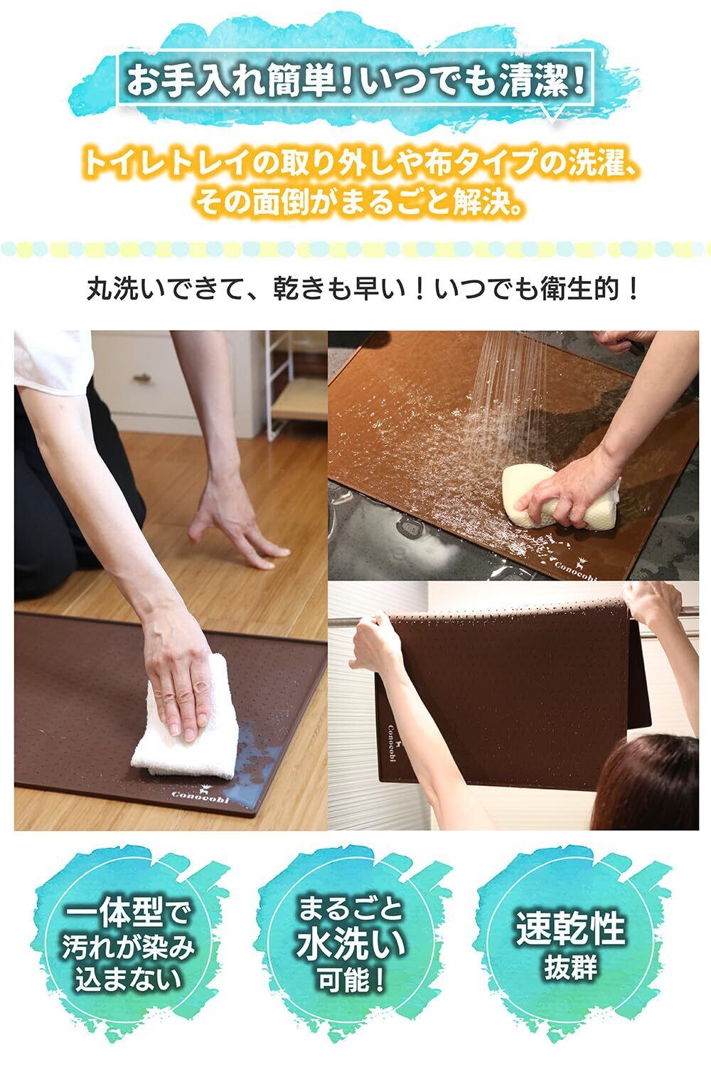 【丸洗いできるから清潔】一体型シリコントイレマットだから汚れが染み込まず、サッと洗えて汚れが染み込まない!ペットトイレや犬トイレトレーとして長くご愛用いただけます。洗った後もすぐ乾くため、愛犬トイレトレーとして使用する際も衛生的。犬トイレトレーとしてはもちろん、猫のトイレトレーとしても清潔を維持できるペット用シリコントイレマットです。