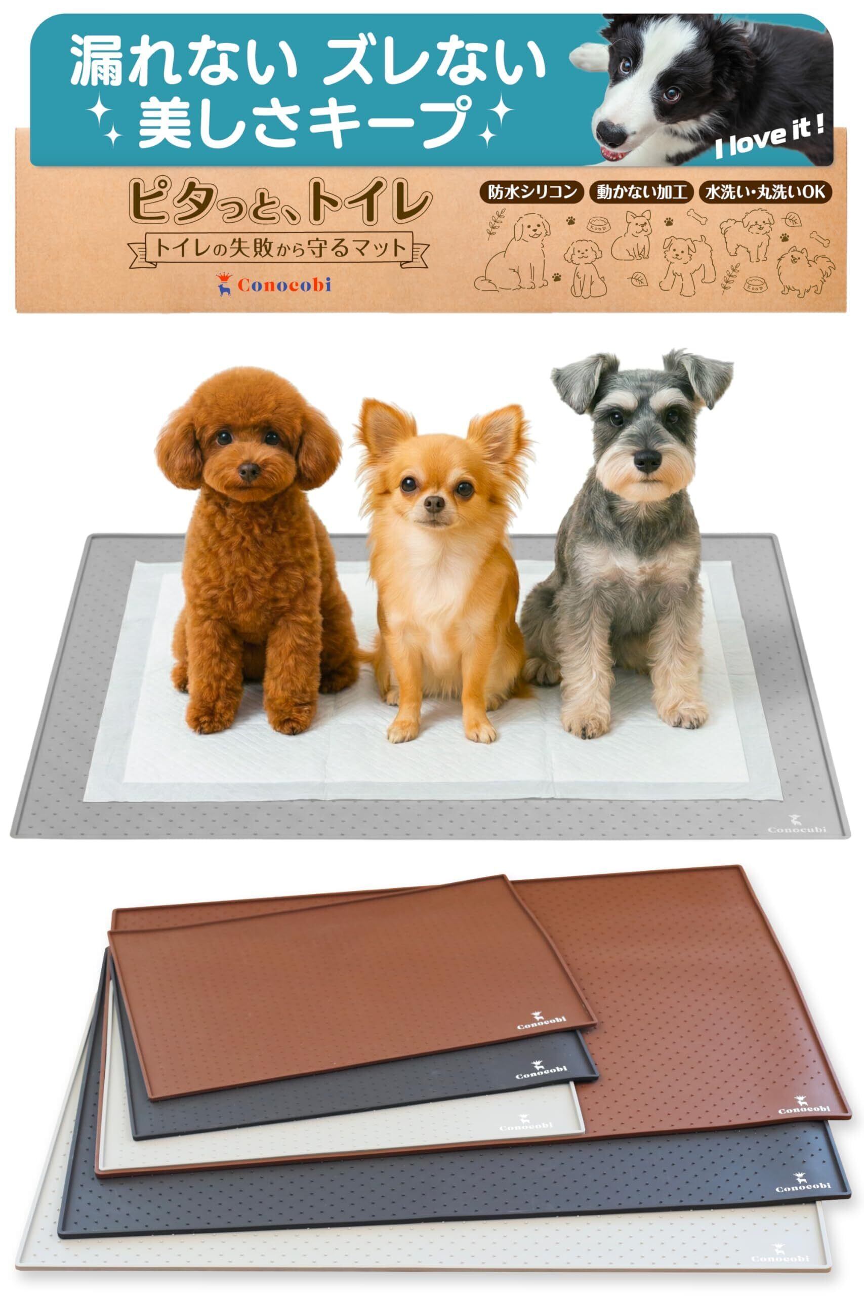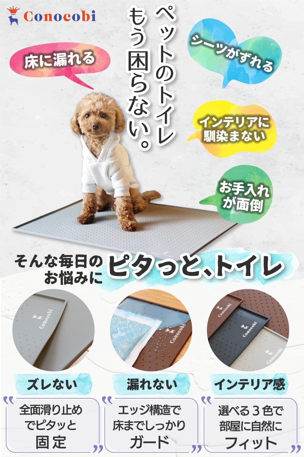 【トイレの失敗も安心】 Conocobi 犬トイレ 犬用トイレ シリコントイレマット 「ピタッと、トイレ 」 犬 ペット 防水 (Mサイズと ワイド なLサイズ) おしっこトレー おしっこマット スーパーワイド (ミスティグレー/L)