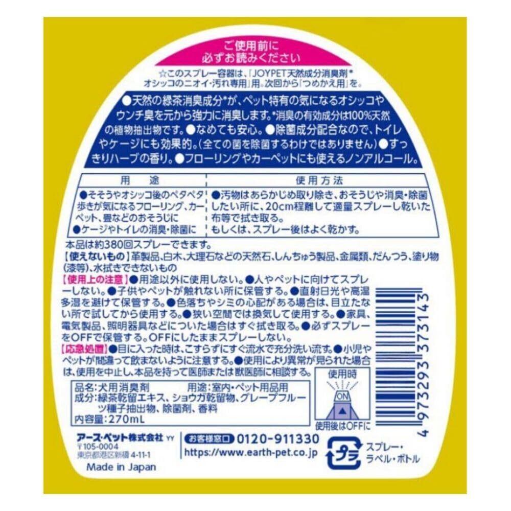 【数量限定】アース・ペット JOYPET(ジョイペット) 天然成分消臭剤オシッコのニオイ・汚れ専用 270ml