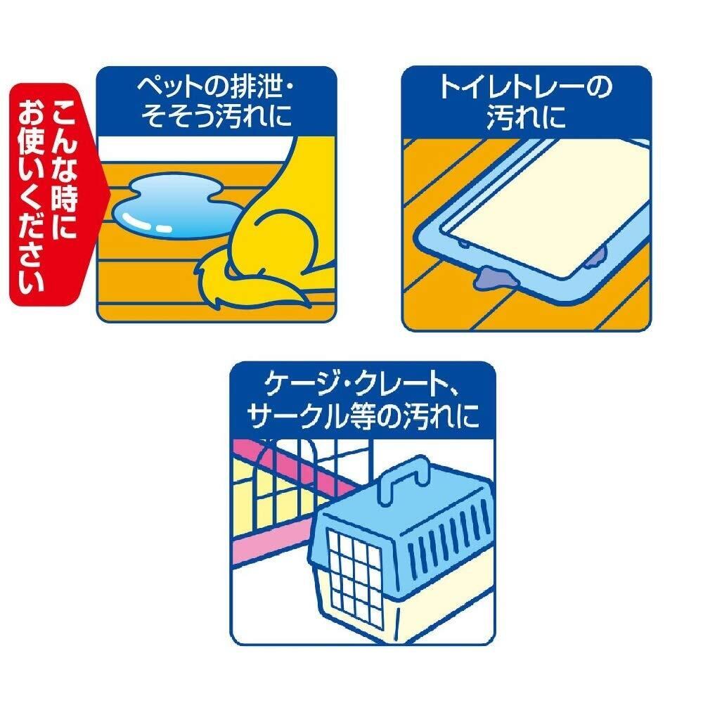 ・アミノ酸系洗浄剤でオシッコ・ウンチの汚れがキレイに拭き取れる。 ・緑茶乾留エキスの消臭成分と除菌剤の配合で、拭いた後もにおわず清潔。 ・アミノ酸系洗浄剤・緑茶乾留エキスを配合なので、使用後ペットがなめても安心。 <用途> ペットによるフローリング・畳などの汚れ拭き