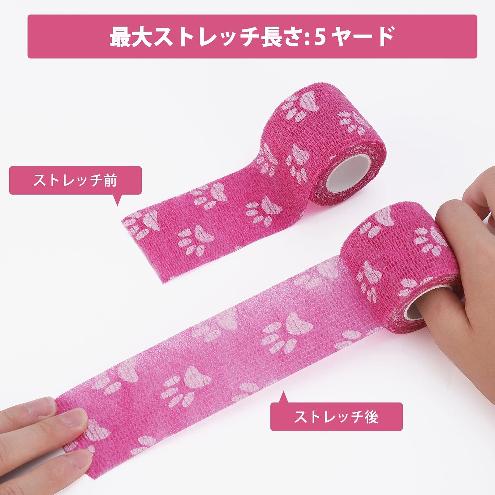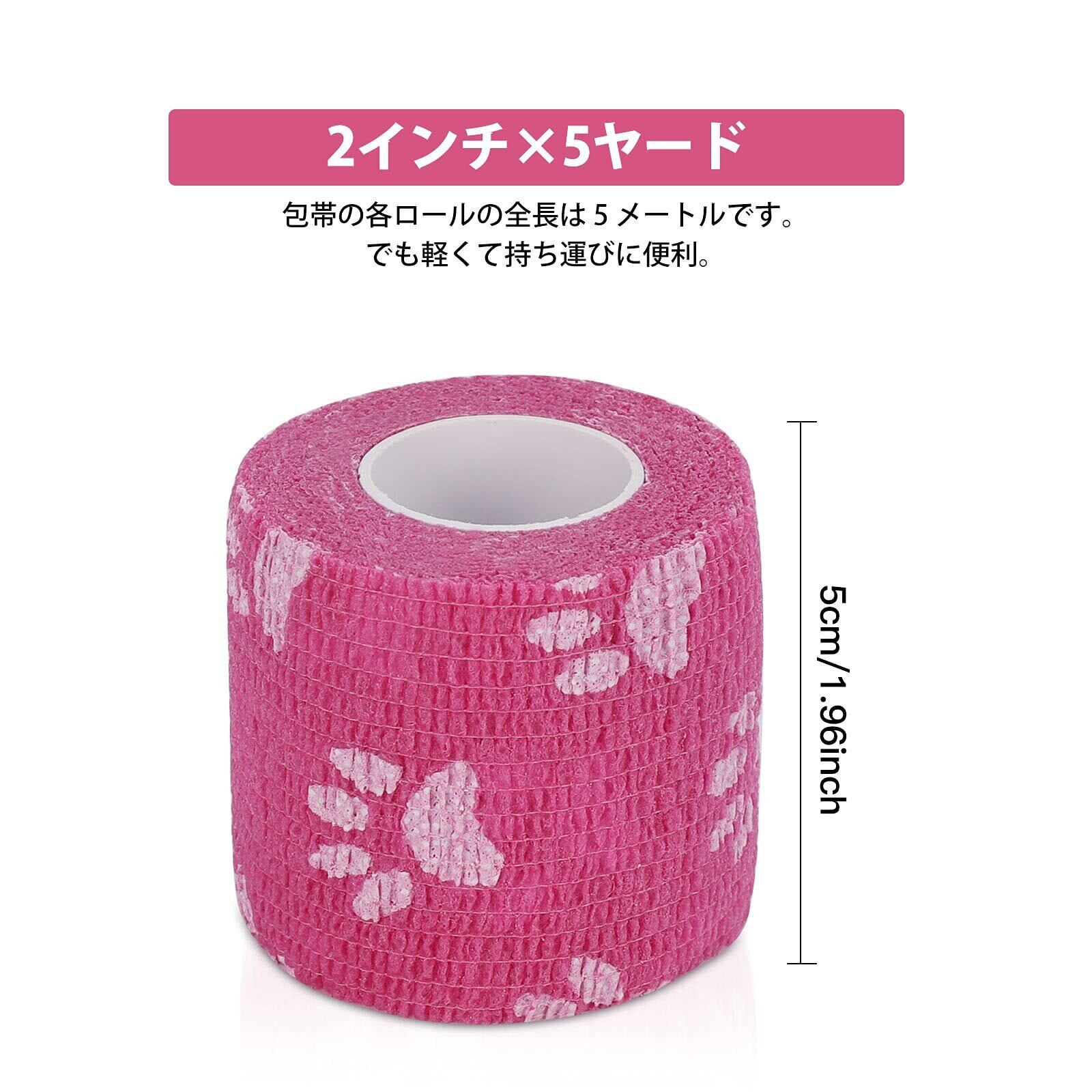 【弾性包帯の用途】:包帯は軽くて、弾力性が高くて、関節の強い固定という点を持って、巻きやすいです。はさみなしで引き裂くことができます. 使いやすいテーピングです。手首、足首、膝等の関節部に適していますよ。運動中に関節や筋肉が損傷するのを防く、痒みと痛みの緩和などに役に立ちます。彼らはまた、ペットに適しています、あなたはそれらとあなたのかわいい猫と犬をラップすることができます,手術後にペットがなめるのを防ぐことができます,汚れ防止や、皮膚・被毛の保護としても利用いただけます。