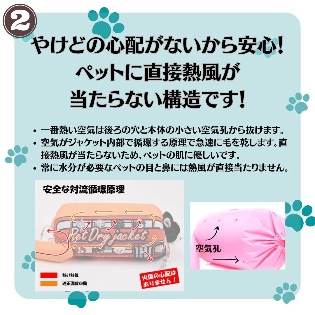 ペットにも飼主にもストレスなく手軽に家庭用ドライヤーで乾かせます。