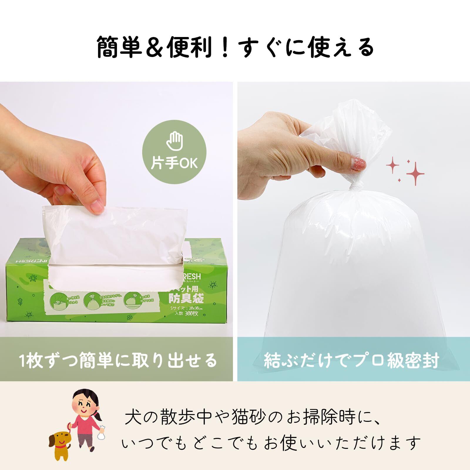 ペット用防臭袋うんちが臭わない袋 大容量300枚入 SSサイズ 犬うんち処理袋 猫砂用 消臭袋【カラー:ホワイト】