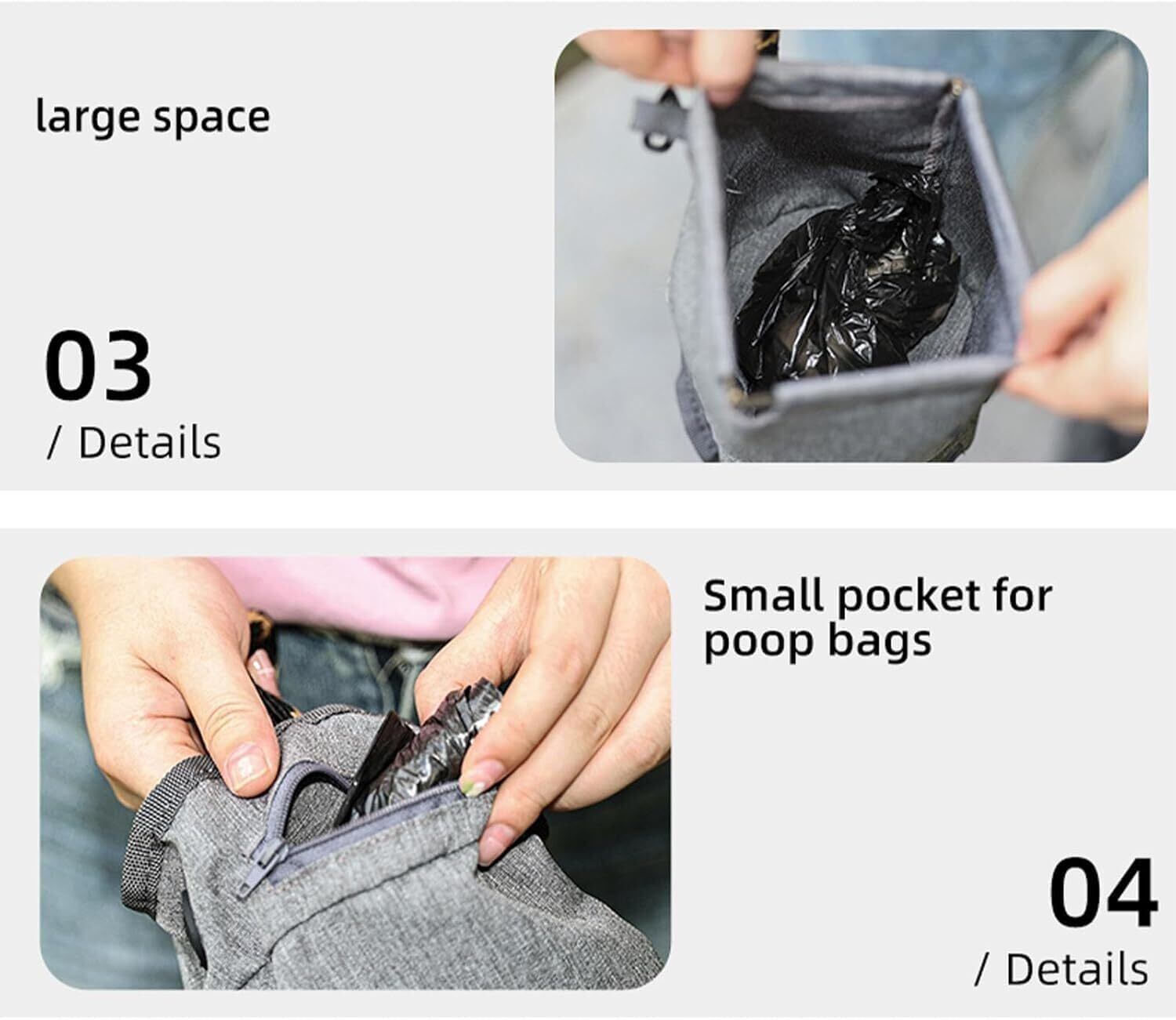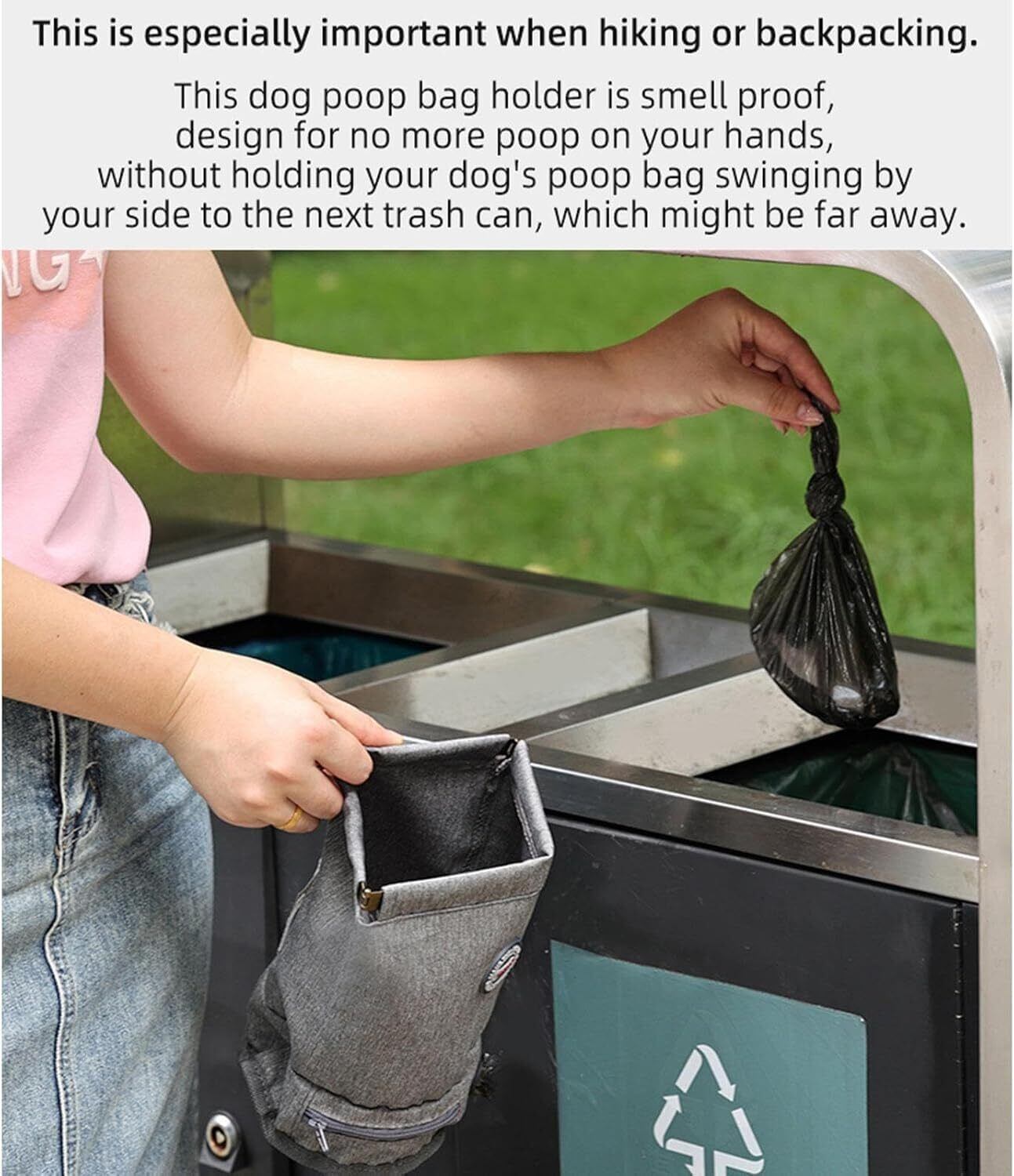 犬のうんち袋ホルダー リード用 - うんちバッグ カラビナ付き防臭ポーチ ,ソフトクロスオープニングうんち袋ポーチ 廃棄物袋用、再利用可能なペットゴミ袋ディスペンサー Hegza