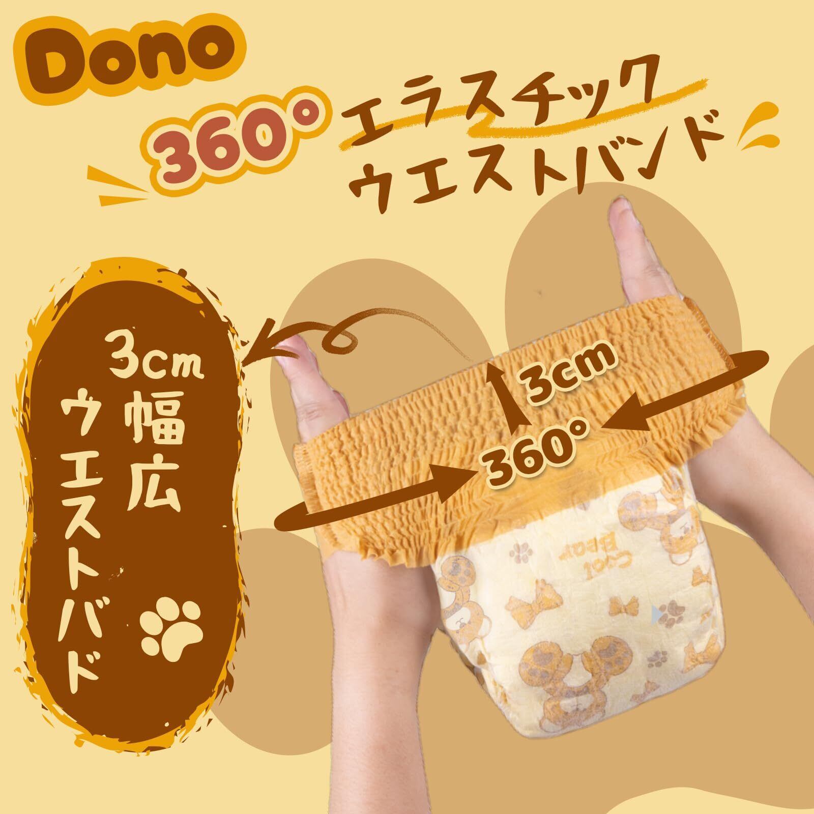 360°エラスチックウエストバンド:伸縮性のいい素材で作った伸び縮みが良い360°バンドと足回りが、愛犬の体にぴったりフィットできつくは感じません。犬の足を伸ばすだけでスムーズに装着でき、脱ぐときはサイドから破れます。取り替えやすいですが、簡単に外れたりずれたりしません。洗う必要がないため、時間を節約でき、飼い主とペットの生活も楽になります。