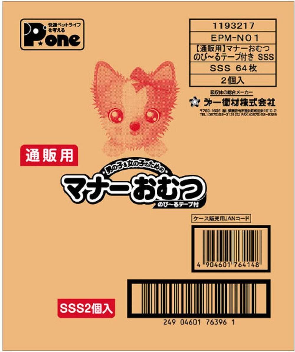 P.one 男の子&女の子のためのマナーおむつ のび~るテープ SSS ジャンボパック64枚×2個 (ケース販売) ペット用 SSSサイズ 64枚入×2個
