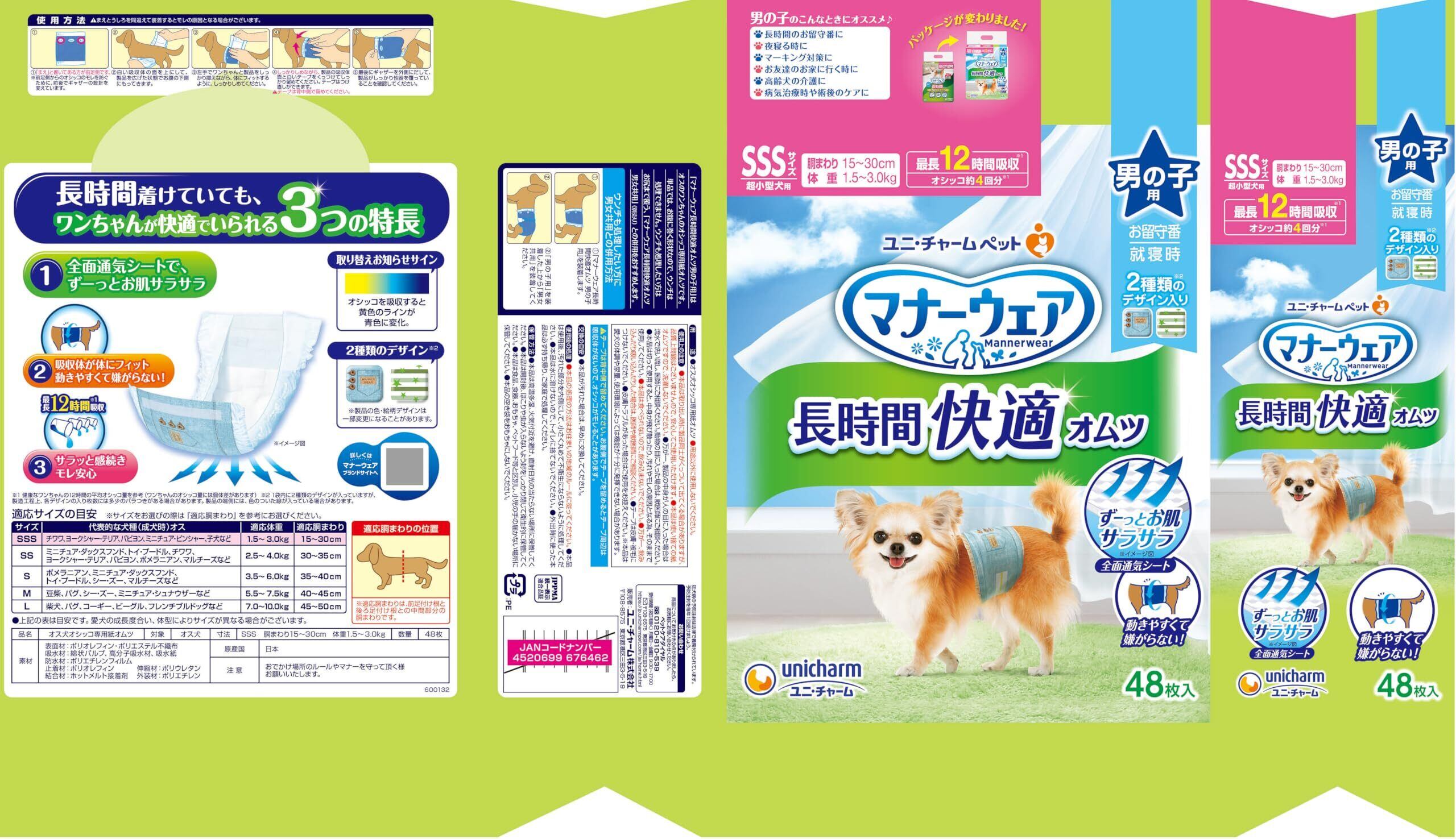 マナーウェア 長時間快適オムツ 男の子用 SSS 48枚