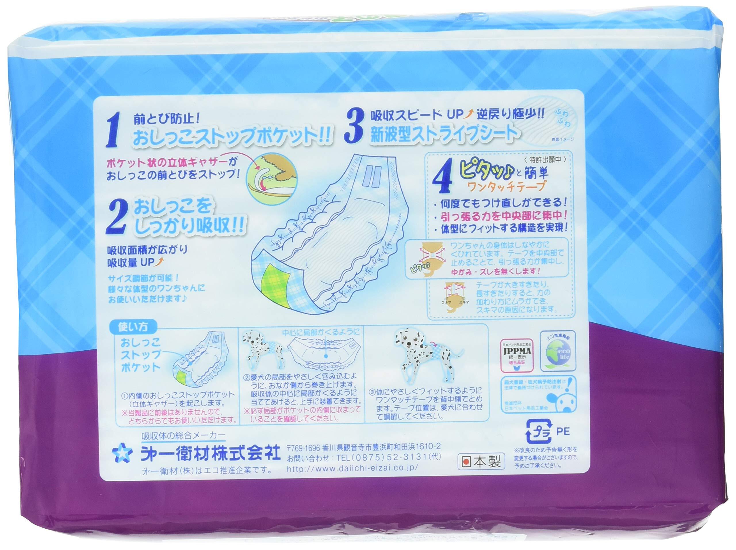 男の子専用の巻くだけ簡単、ペット用紙おむつです。おしっこストップポケットで前とび防止。ギャザー間も広がり吸収面積UPでより安心。さらに吸収面積が広がり吸収量UP。新波型ストライプシートで吸収スピードUPで逆戻り極小。