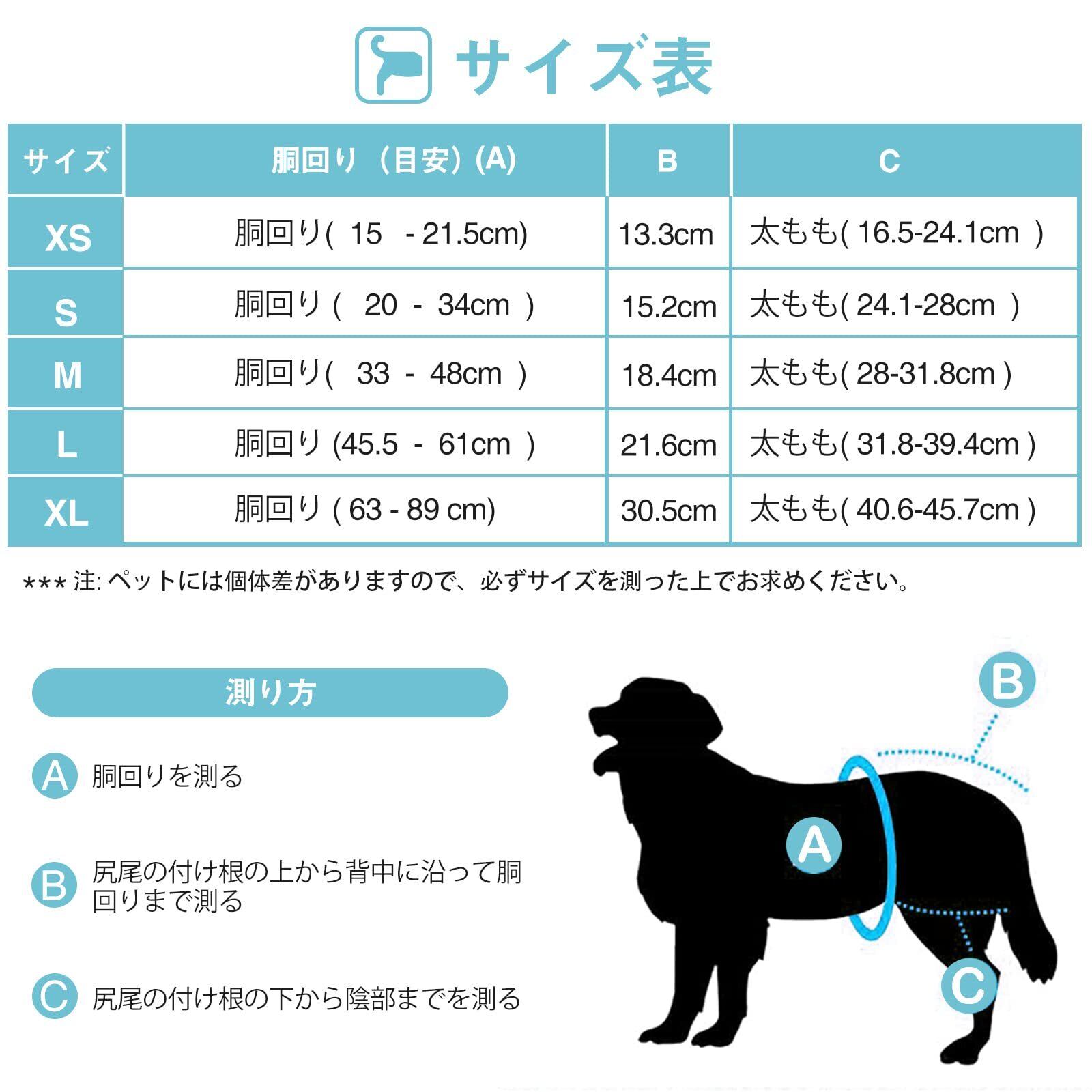 【ウェストサイズ】Sサイズ:約20‐34cm(8"~13.5"インチ)重量:約0.2kg;小・中型犬に適用される。 ご購入の前に、柔らかいテープで犬のウェストを測定し、またサイズ表をご参照ください。