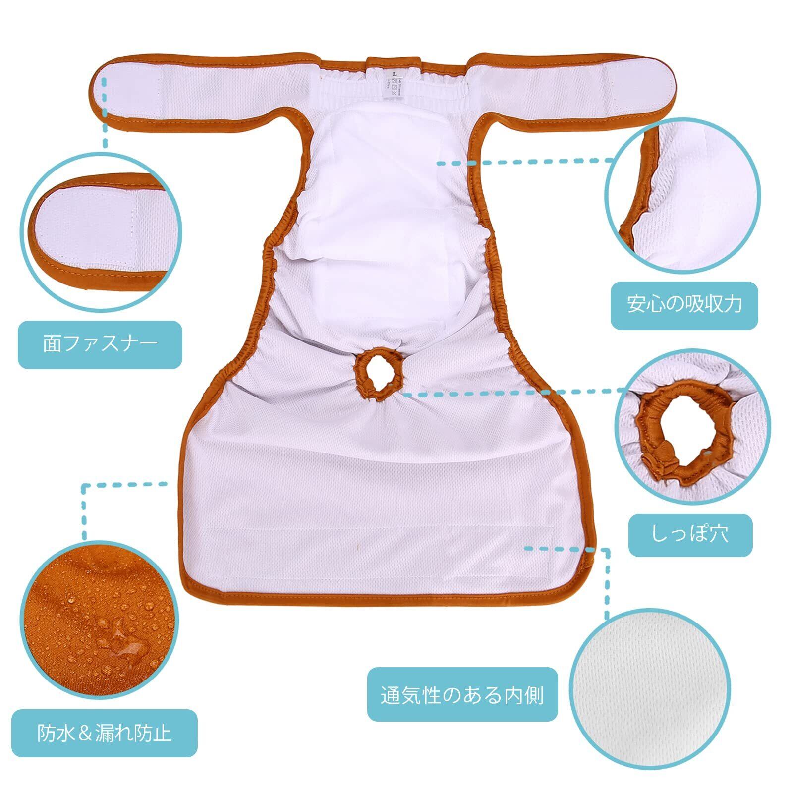 【脱着便利】弾性ストラップも付きますので愛犬のウエストに合わせて長さを簡単に調整できます;ジックテープ仕様で、脱着も便利です。