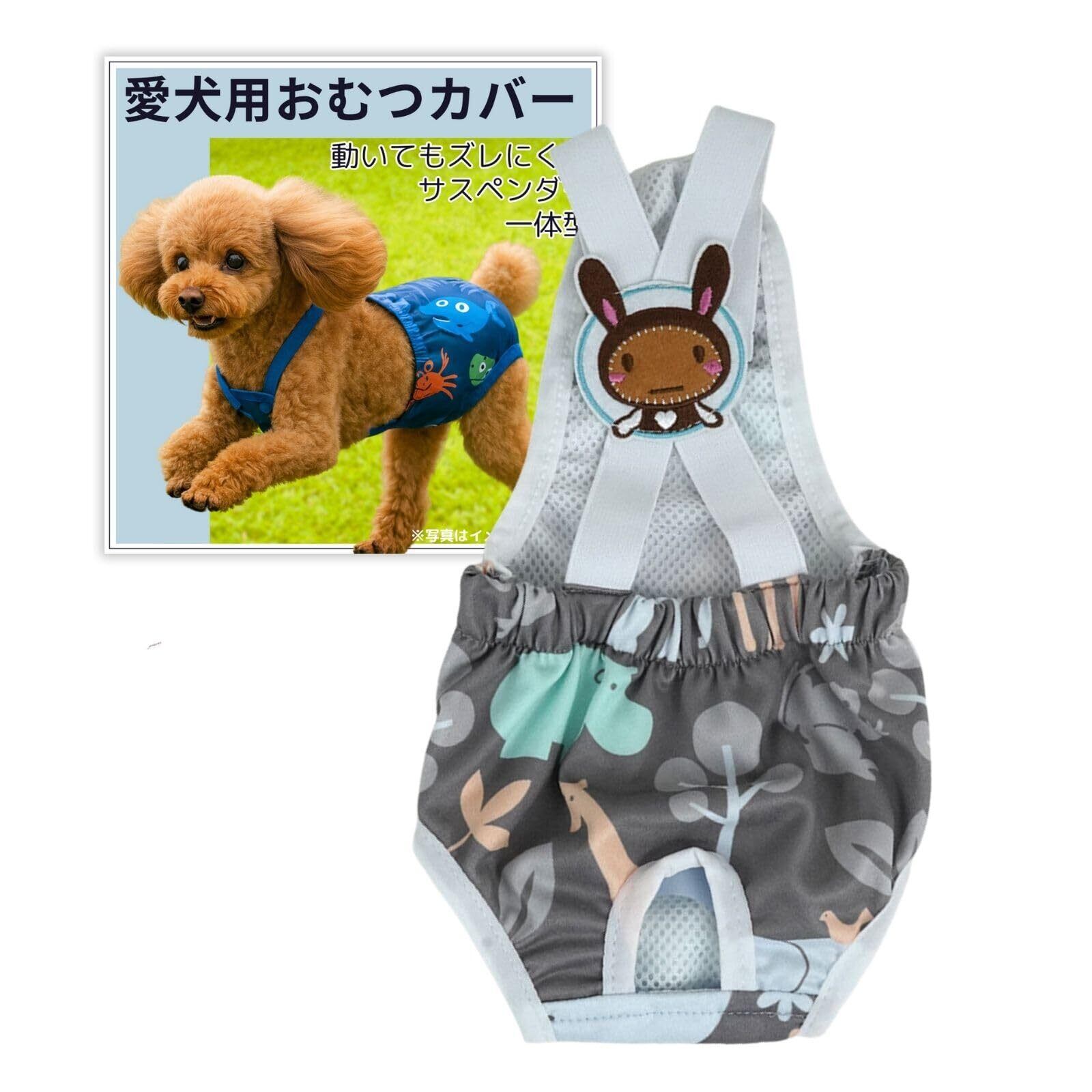【特価商品】犬 おむつカバー 女の子 オムツカバー オムツ サスペンダー マナーベルト 男の子 犬用おむつカバー パンツ マナーパンツ (うさぎ柄グレー XL)