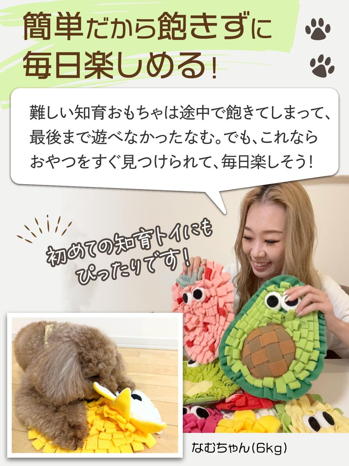 【獣医師×動物健康管理協会監修】 ノーズワークマット (小型犬専用)『【トイプー2匹の愛犬家も愛用】 』1人遊びやストレス発散にx難易度低めx丸洗い可能(果物戦士シリーズ) (ピンクいちご)