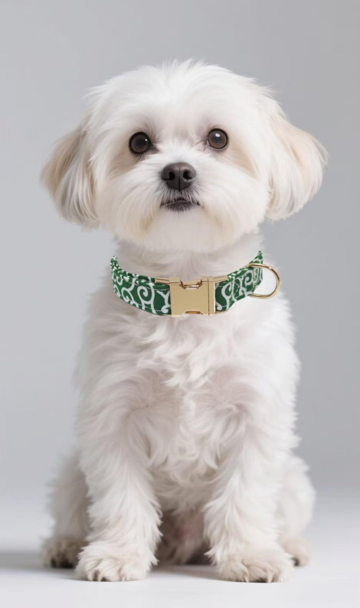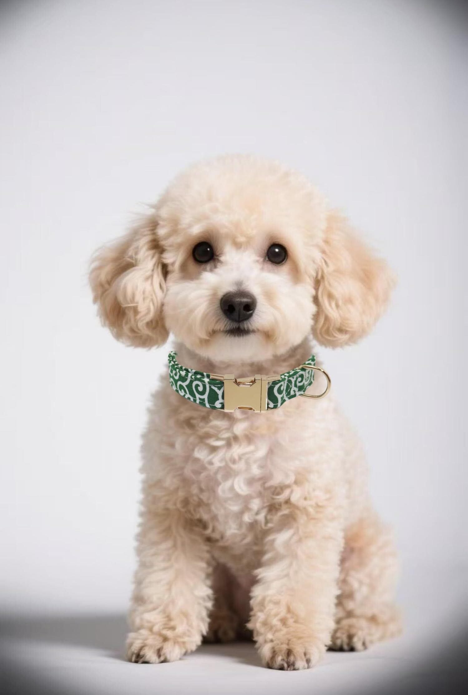犬 首輪 おしゃれな唐草模様 布製 ペット首輪 小中型犬用(唐草模様緑 S)