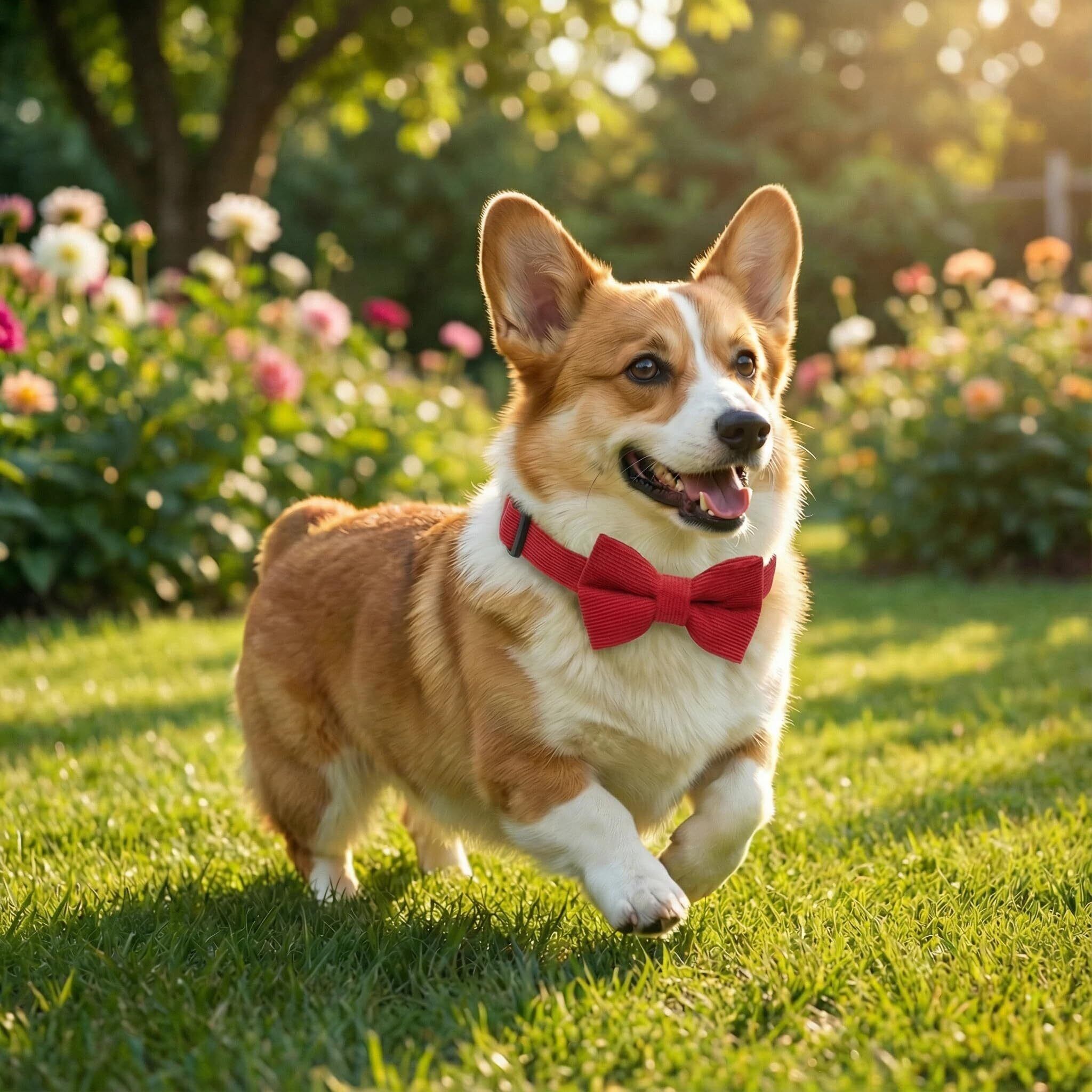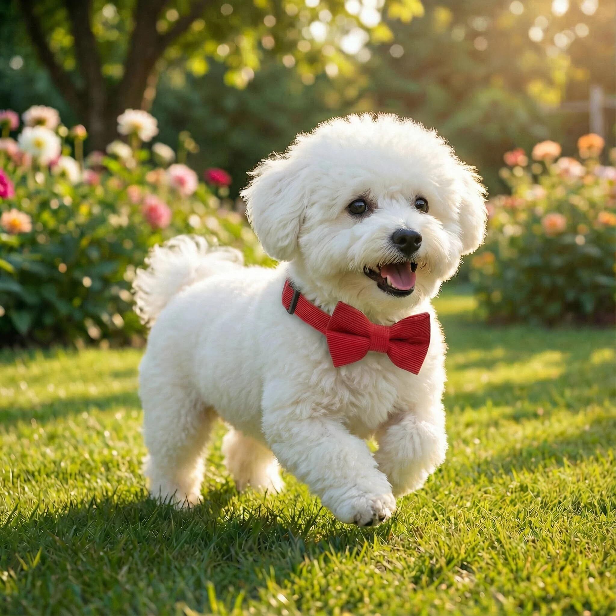 THAIN 犬用首輪 蝶ネクタイ付き コーデュロイ ソフト 通気性 調節可能 プラスチックバックル 小型中型大型犬用首輪 (赤, S)