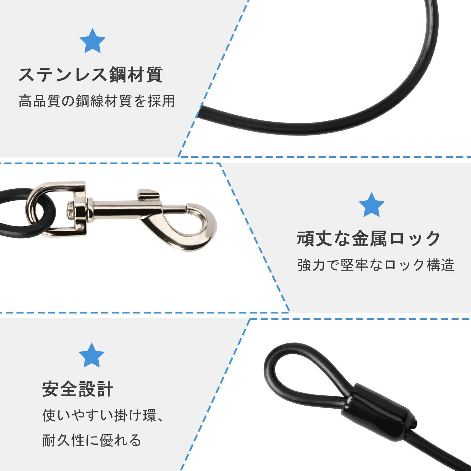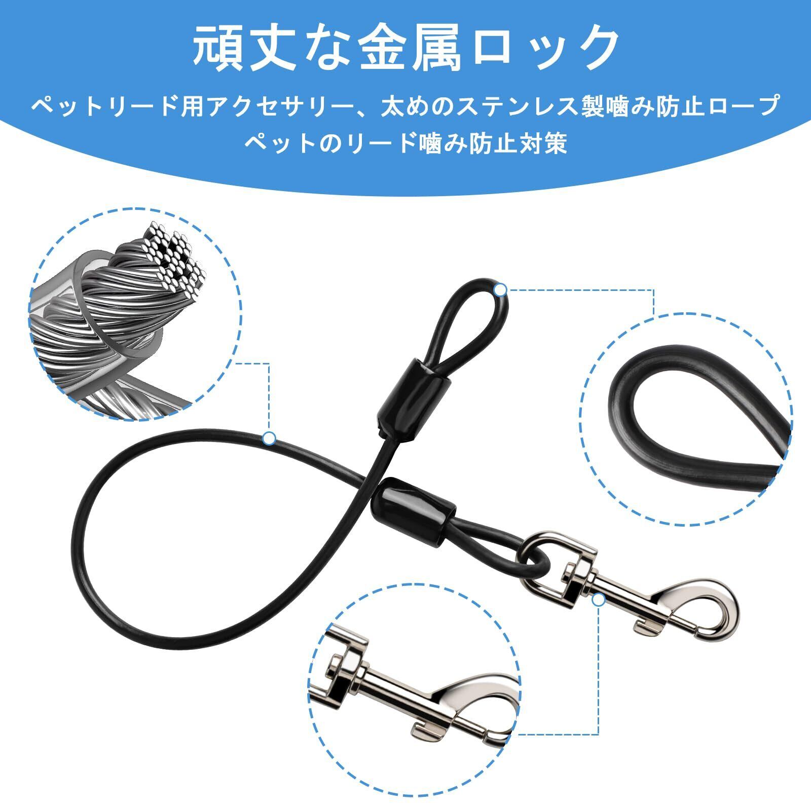 噛み防止ワイヤーリード 犬用 耐咬ロック付き 錆びないステンレス製 小型犬から大型犬まで対応 しつけ訓練用 カラビナで首輪/ハーネスに簡単装着 屋外係留用 強度 のケーブルタイプ (2本の咬み防止ロープ)