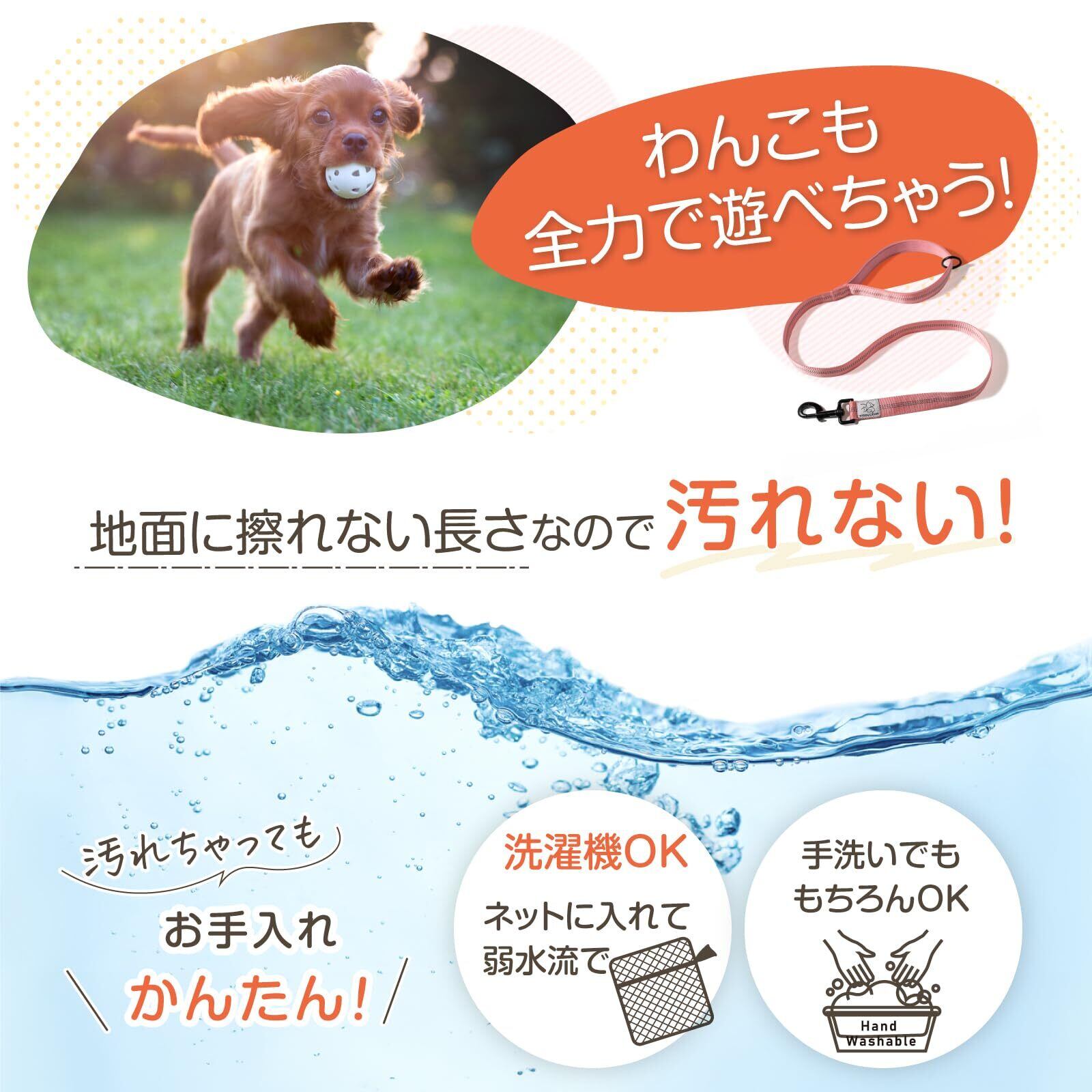 引っ張り癖のあるワンコのための 犬 リード が新登場! 従来の リード 犬 とは違い、短めに設計されているため、愛犬との距離が近く 信頼関係をしっかり築けます。 犬のリードとして大切な とっさのブレーキがかけやすく安全な設計です。 また、短く設計されているため 手首に巻かずに使用できるので、手首が痛くなりません。 反射材も両面しっかり縫い付けられており、夜間や早朝の 犬 散歩 リード としても最適です。