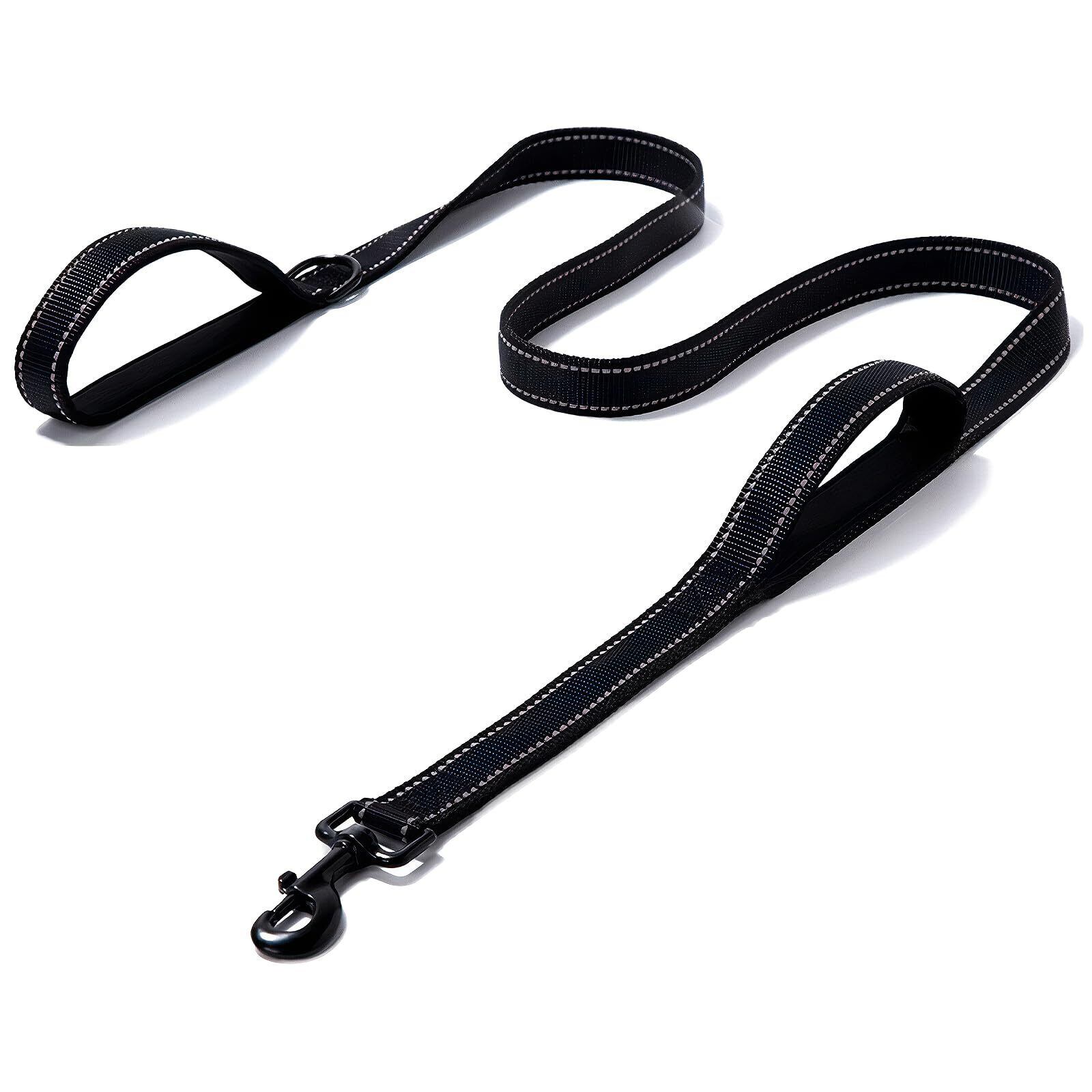 Morisho 犬 散歩 しつけ トレーニング リード ロング 1.5m 持ち手 2個 小型犬 中型犬 大型犬 夜間 反射板 躾 訓練 ナイロン ブラック 黒