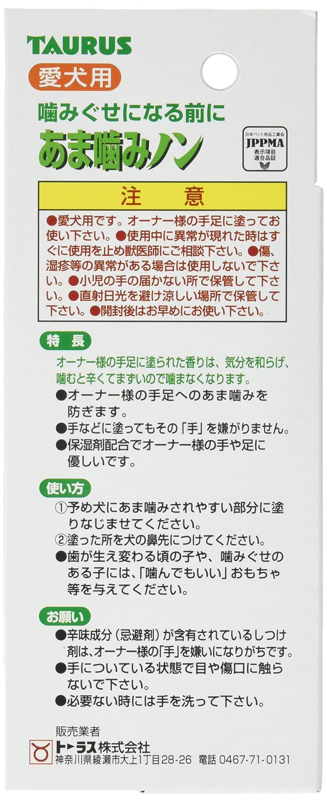 オーナー様の手足に塗ってあま噛みを防ぎます。保湿成分配合で手足に優しいので安心です。